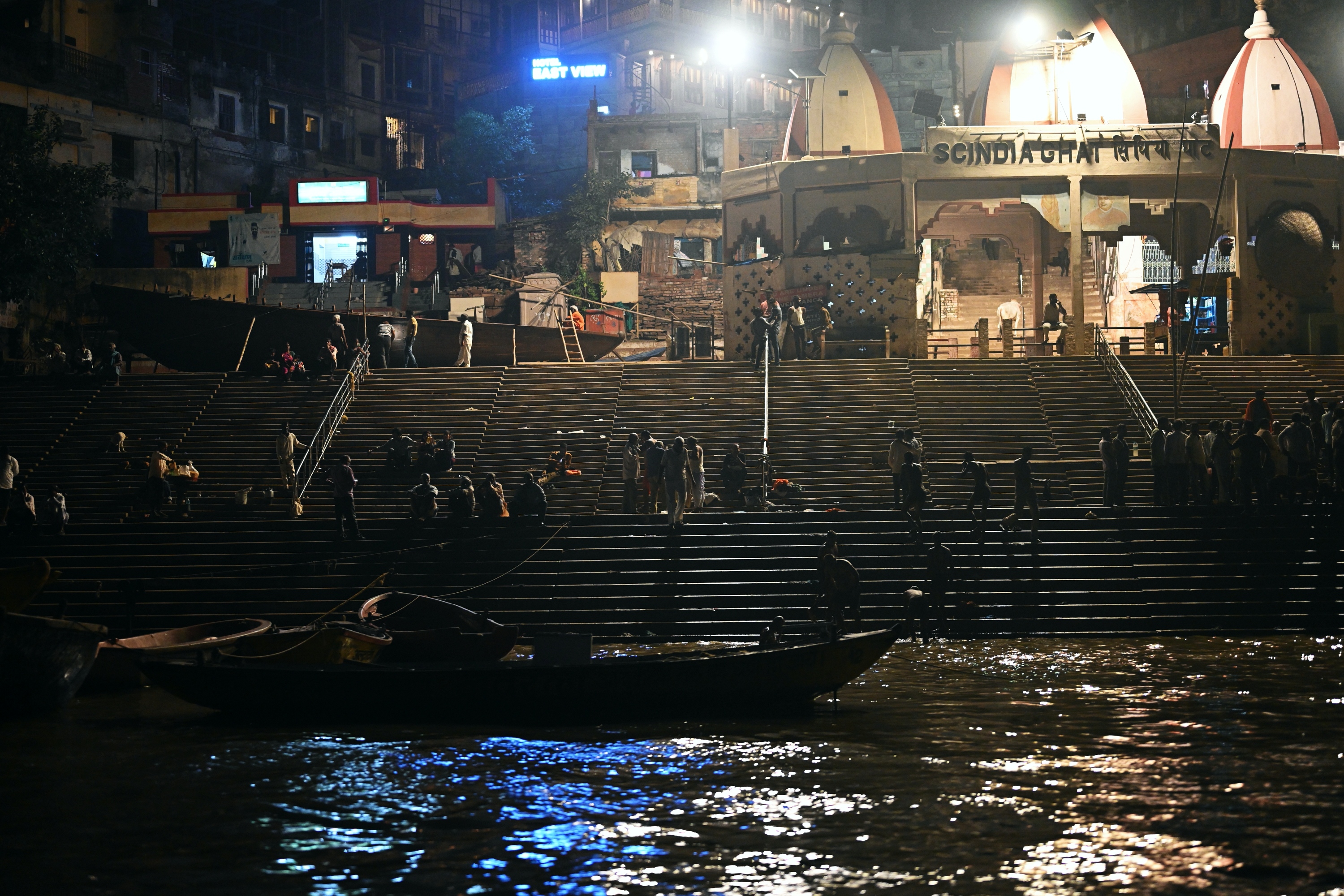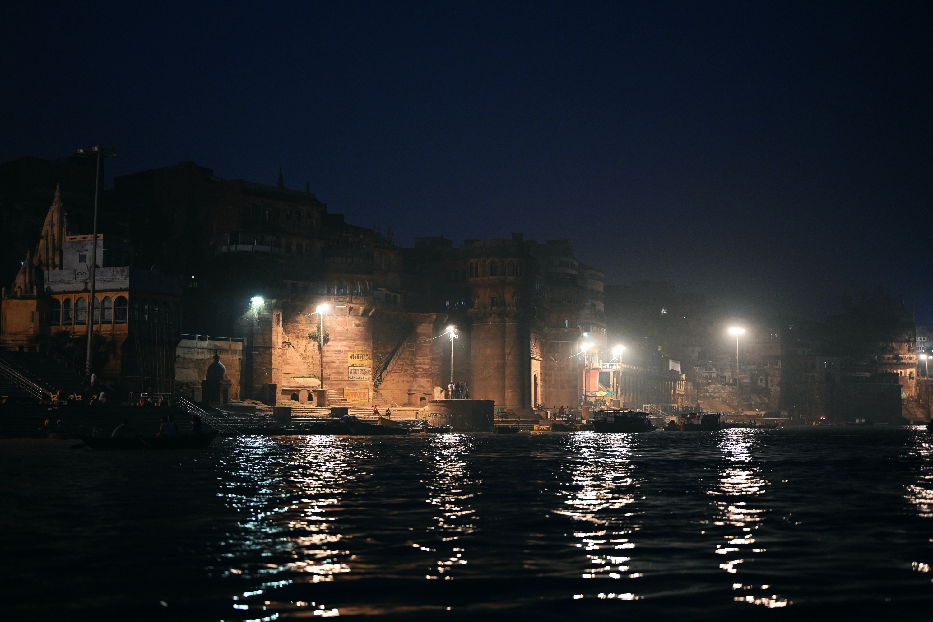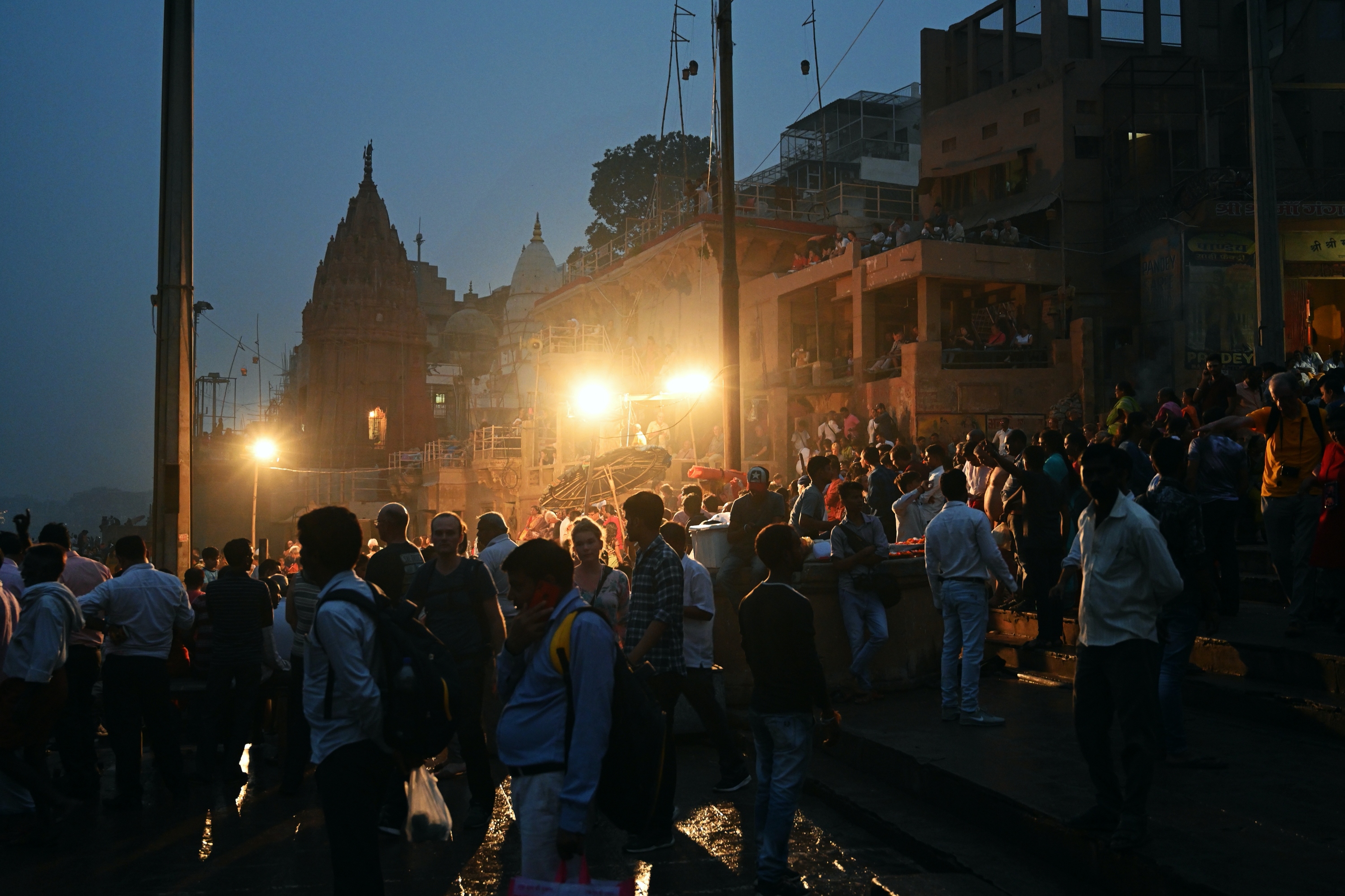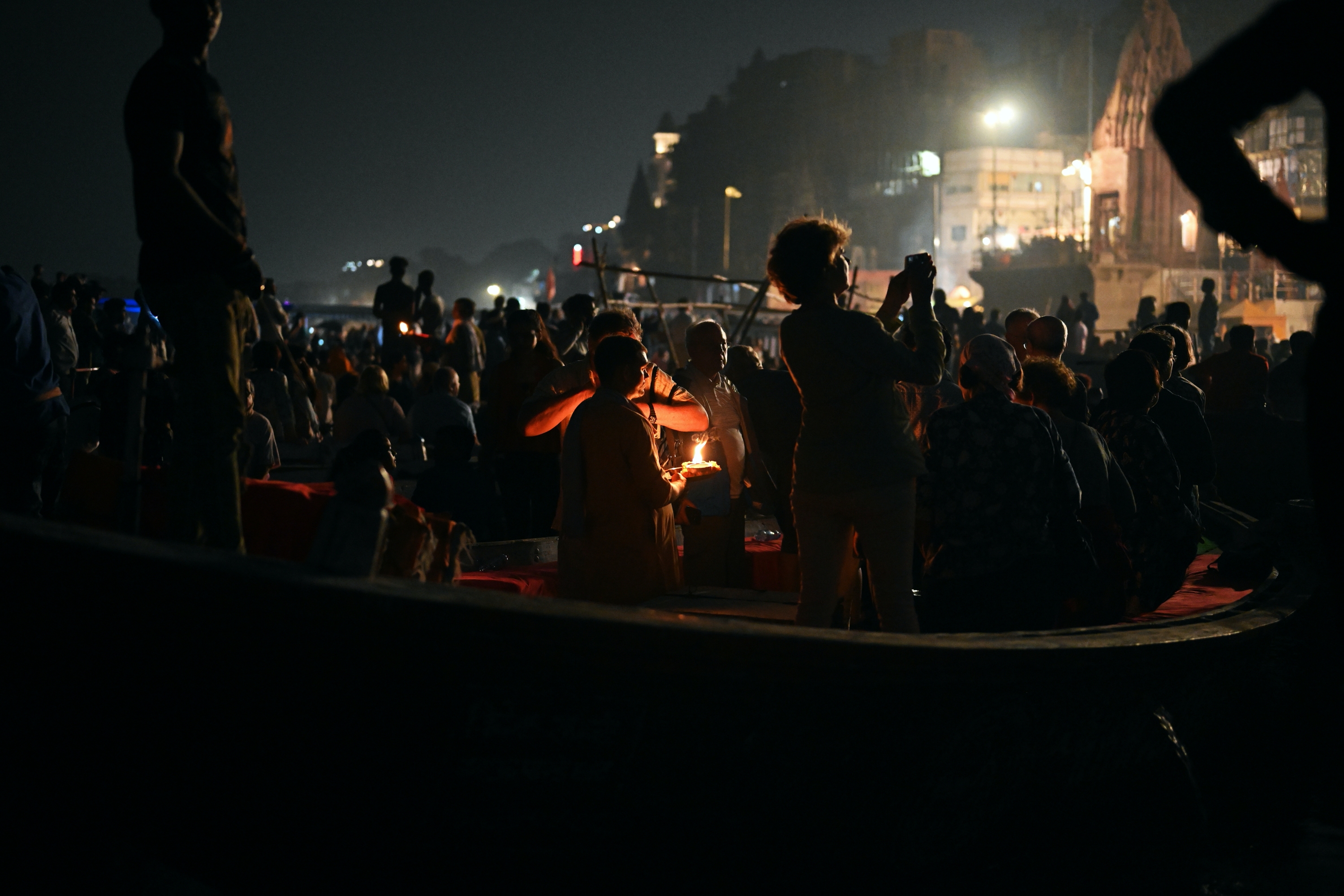 Below is a selection of photos taken during a nighttour over the Ganges river with a view on the banks of the river in the evening on October 20 2019. Click on a small photo for a larger view, then select the next one with the cursor keys or the arrows on either side of the photo.