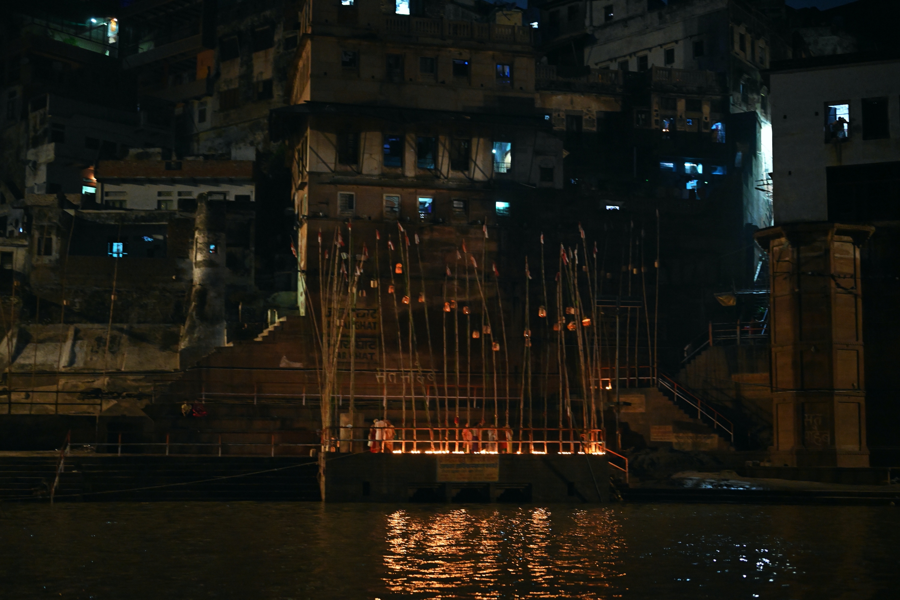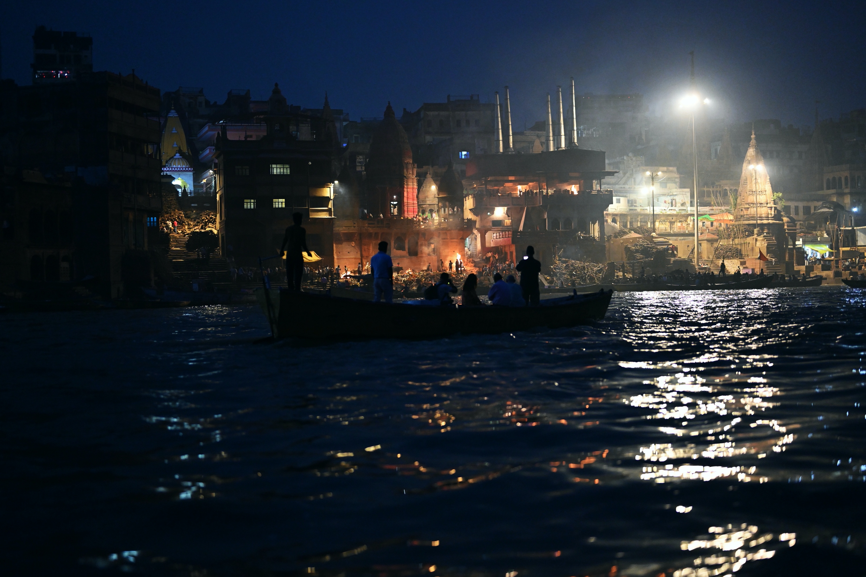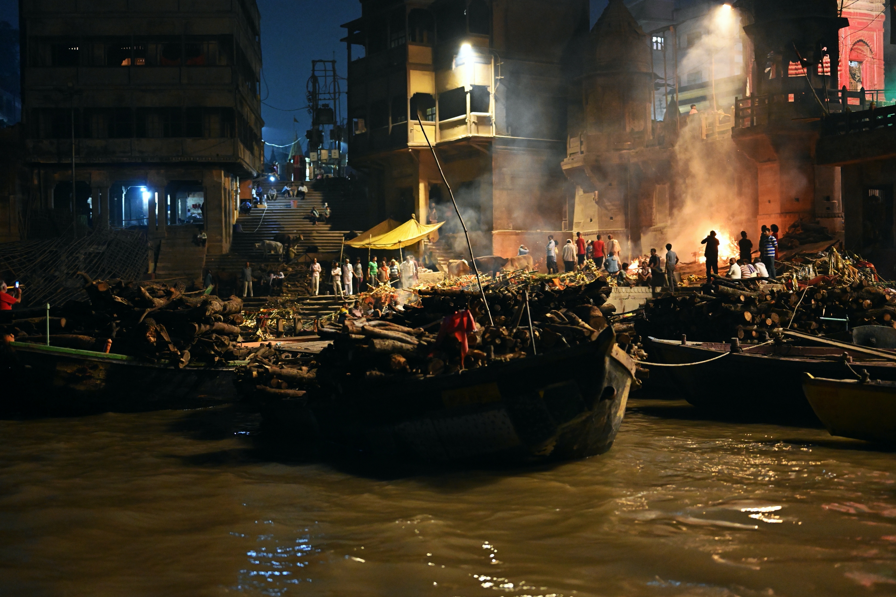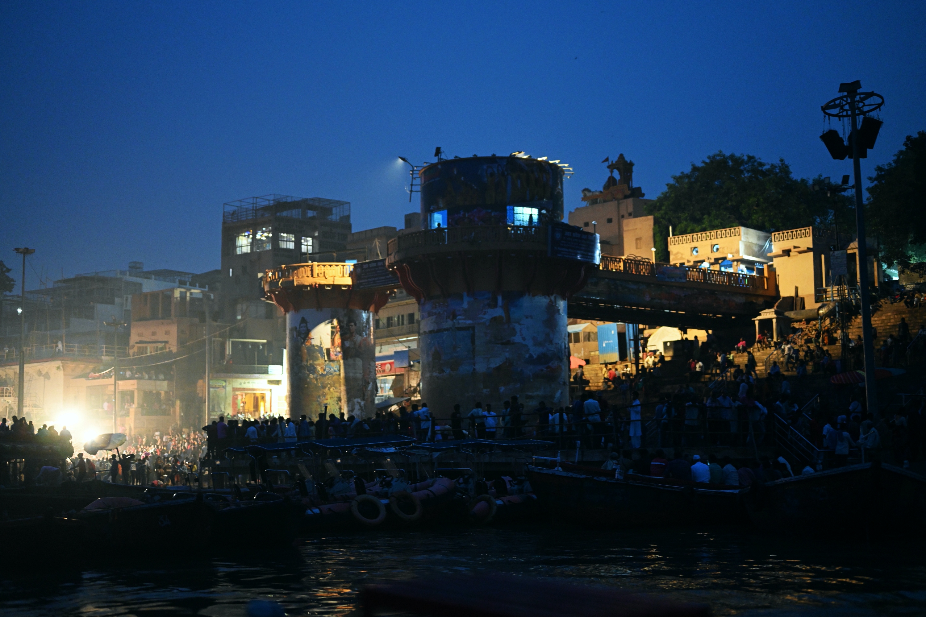 Below is a selection of photos taken during a nighttour over the Ganges river with a view on the banks of the river in the evening on October 20 2019. Click on a small photo for a larger view, then select the next one with the cursor keys or the arrows on either side of the photo.