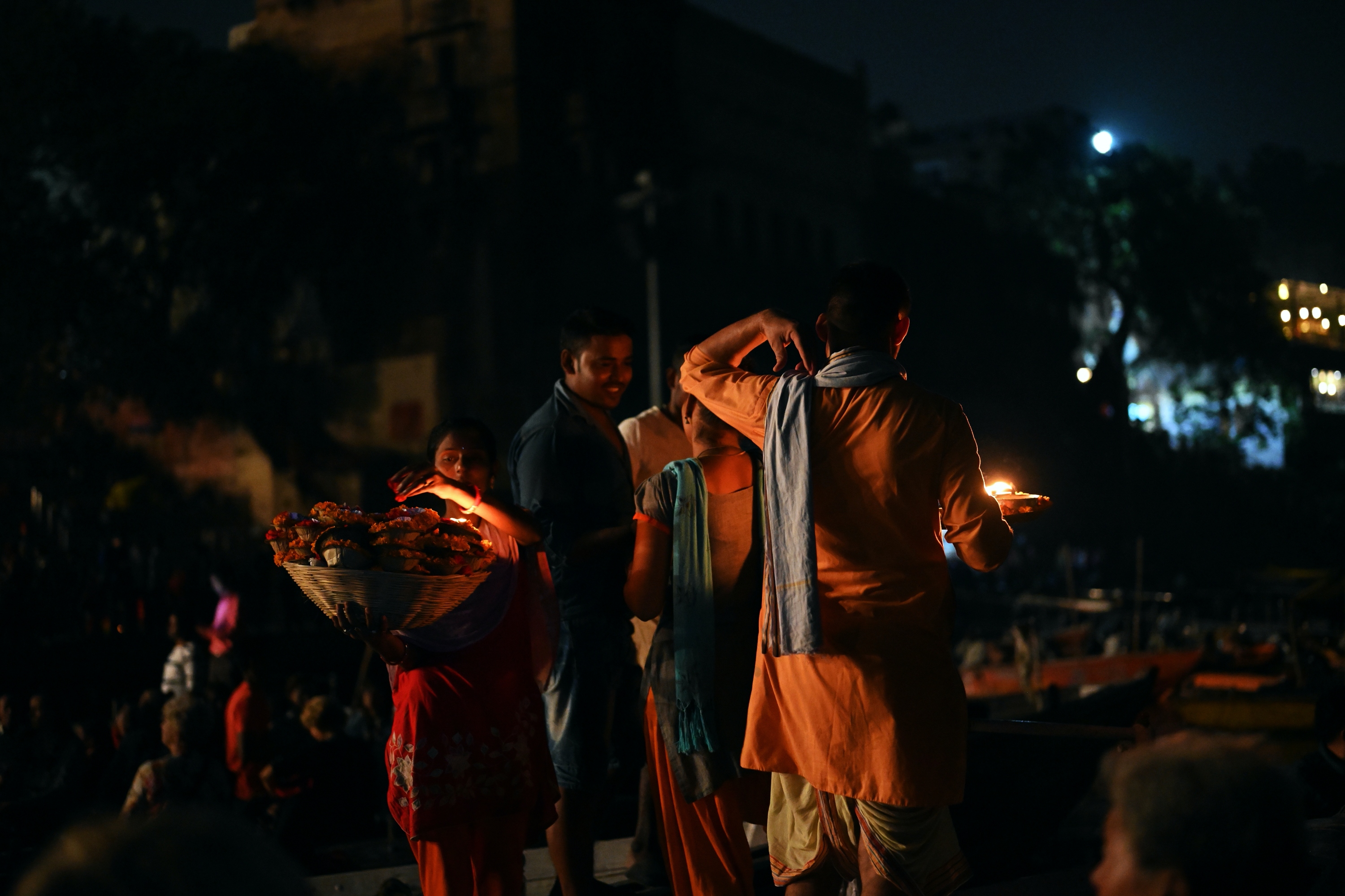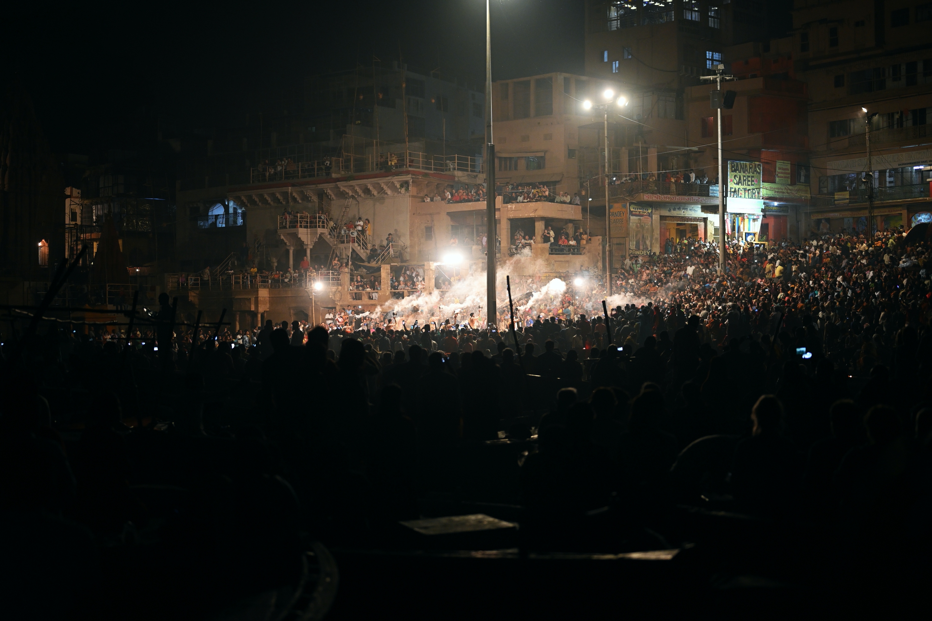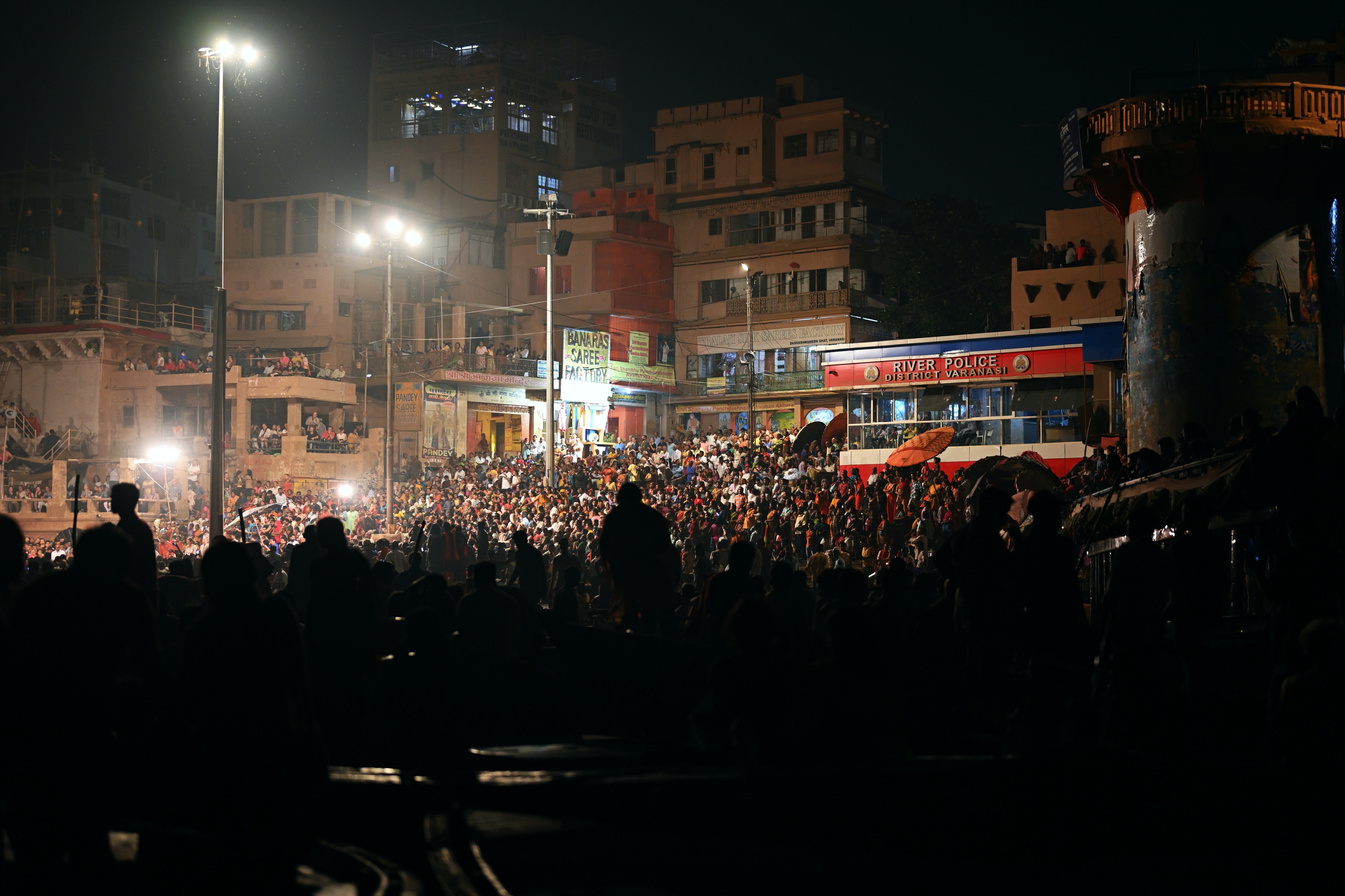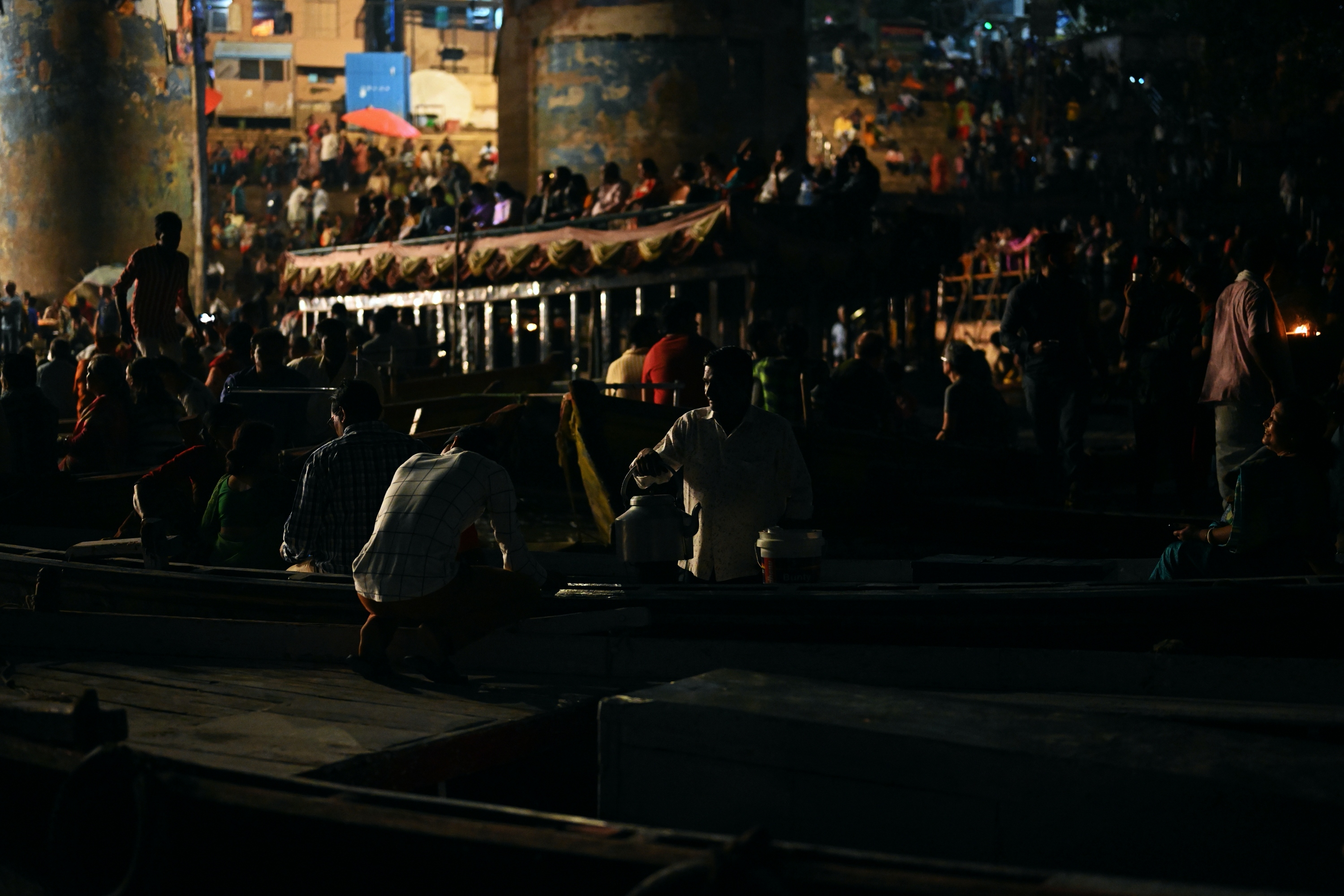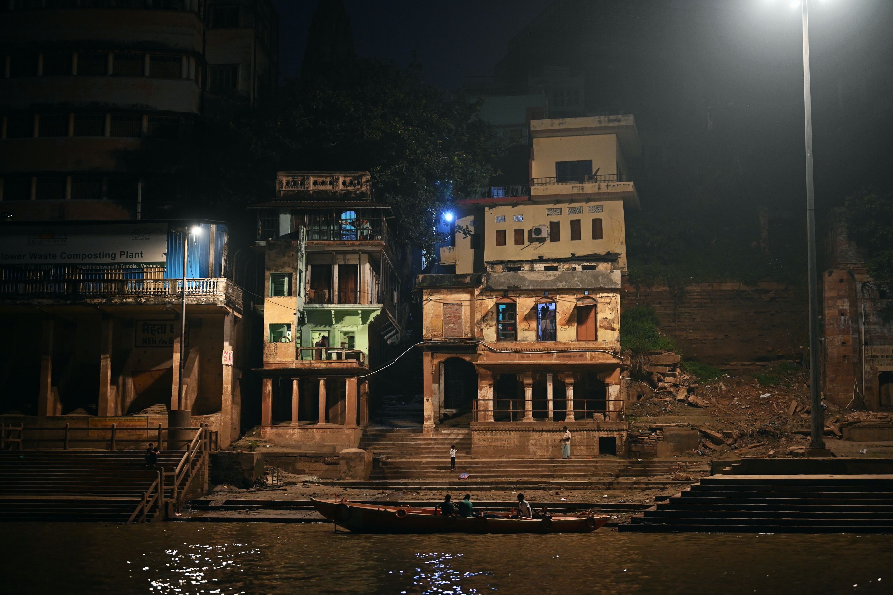 Below is a selection of photos taken during a nighttour over the Ganges river with a view on the banks of the river in the evening on October 20 2019. Click on a small photo for a larger view, then select the next one with the cursor keys or the arrows on either side of the photo.