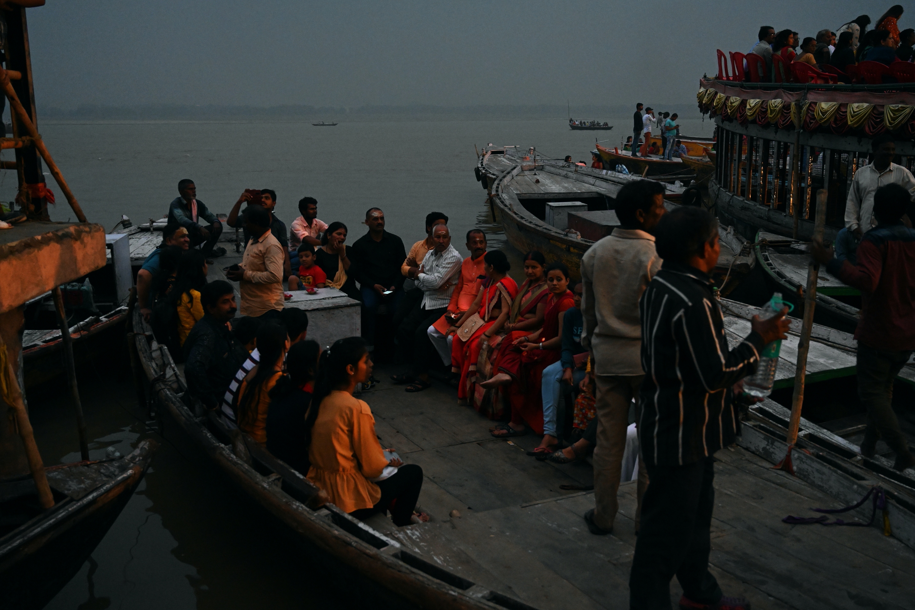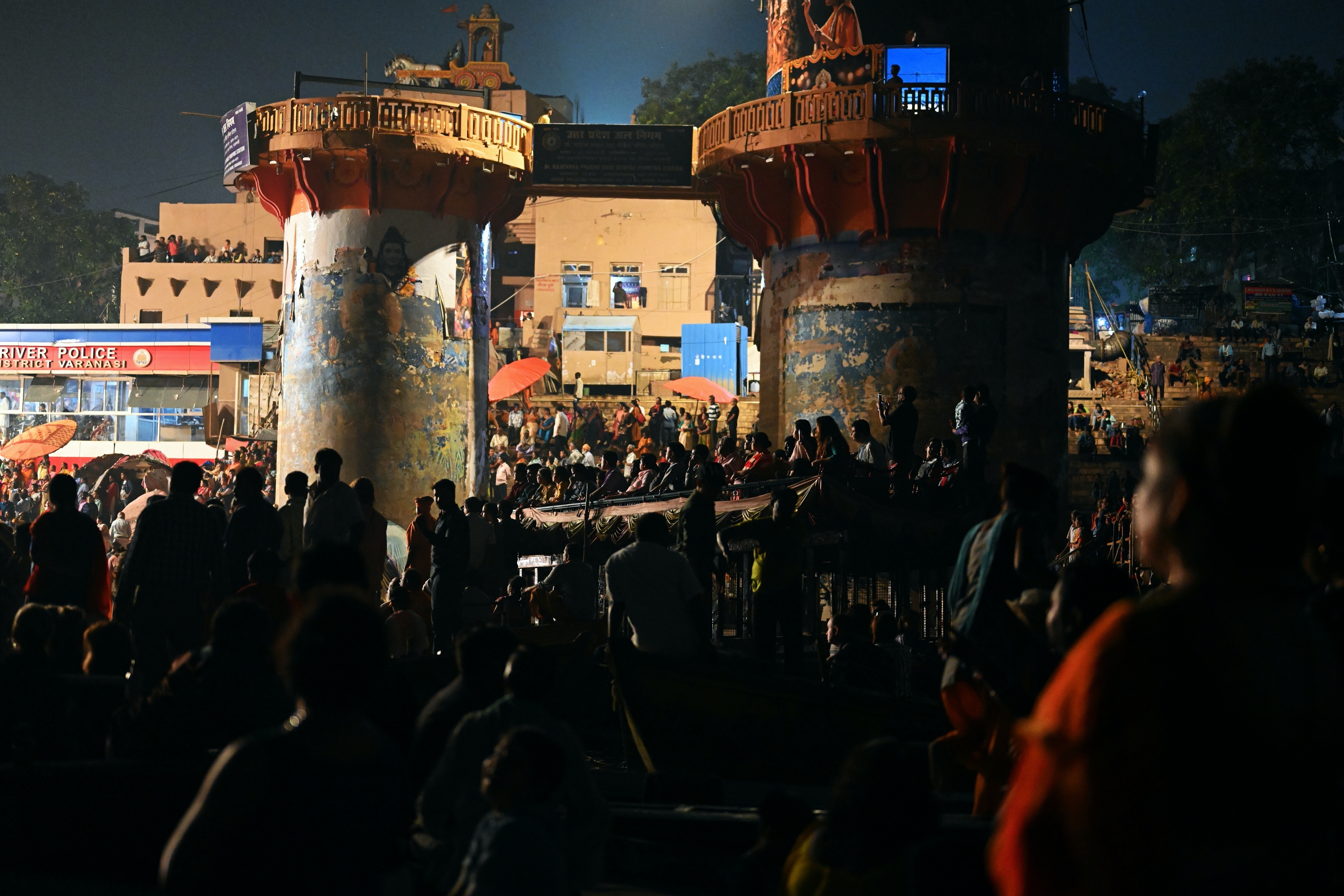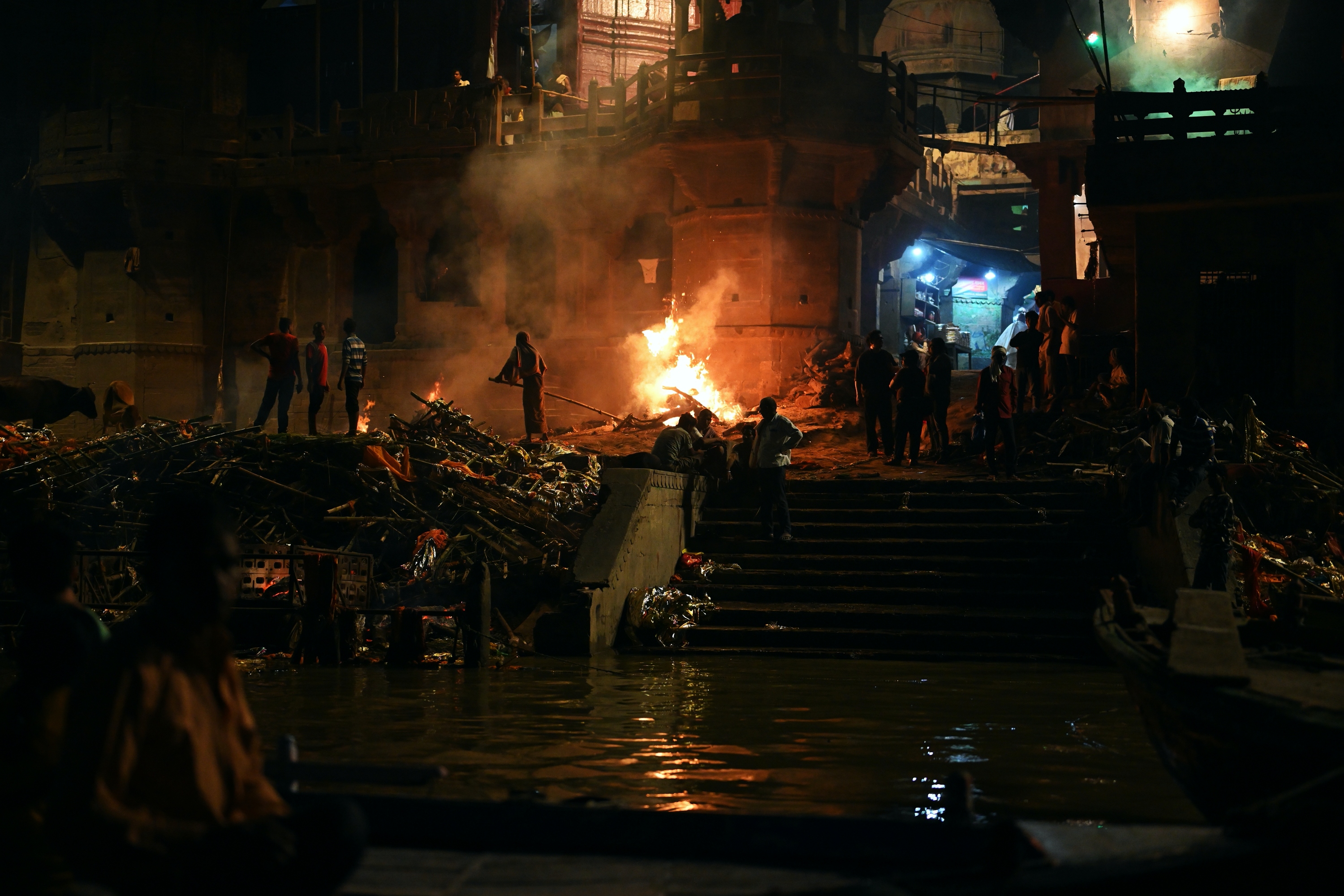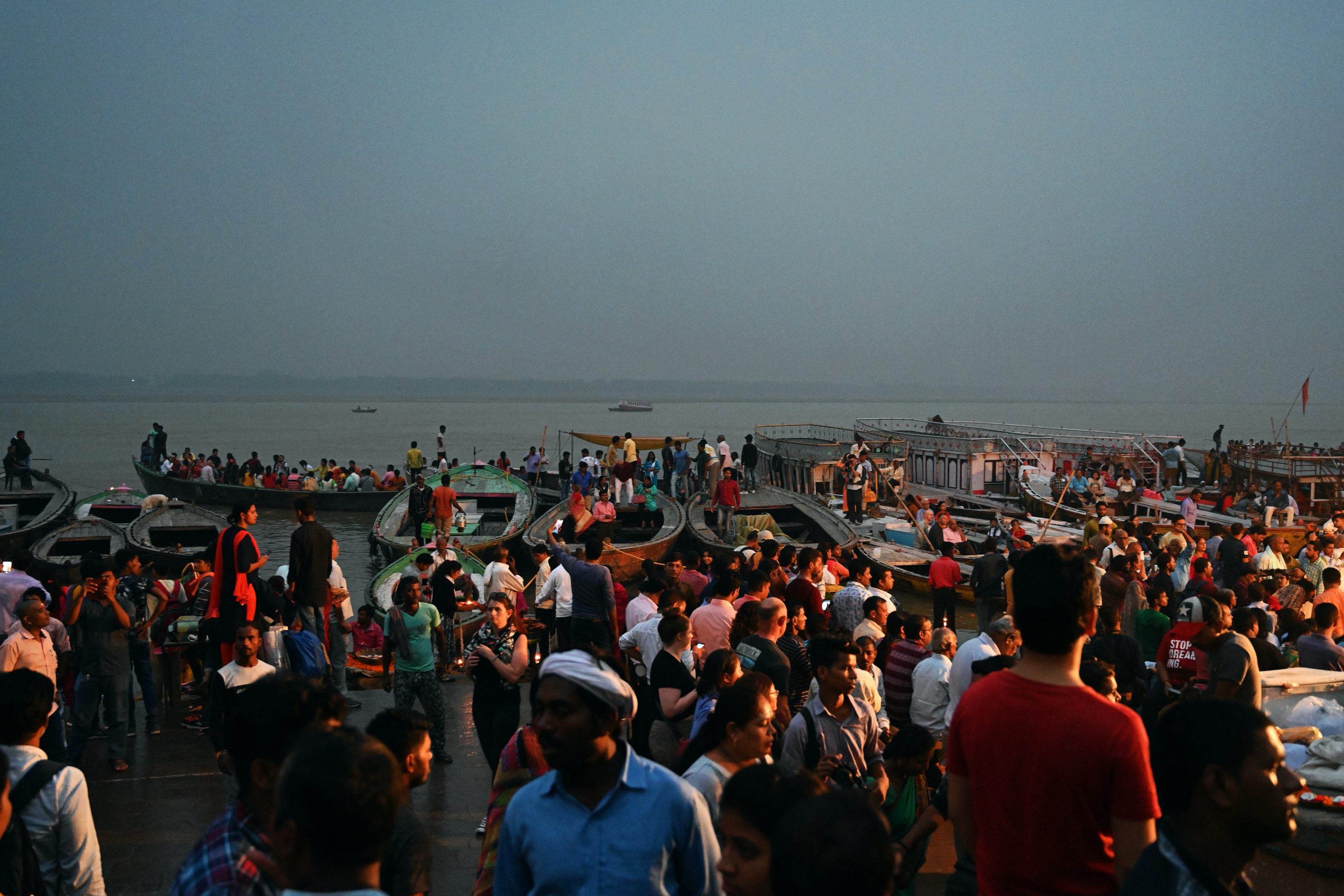 Below is a selection of photos taken during a nighttour over the Ganges river with a view on the banks of the river in the evening on October 20 2019. Click on a small photo for a larger view, then select the next one with the cursor keys or the arrows on either side of the photo.