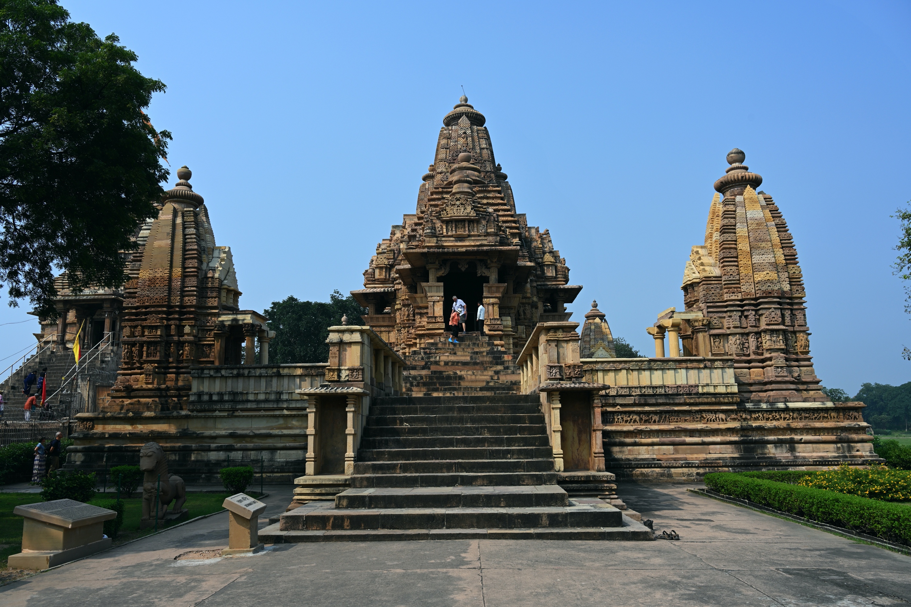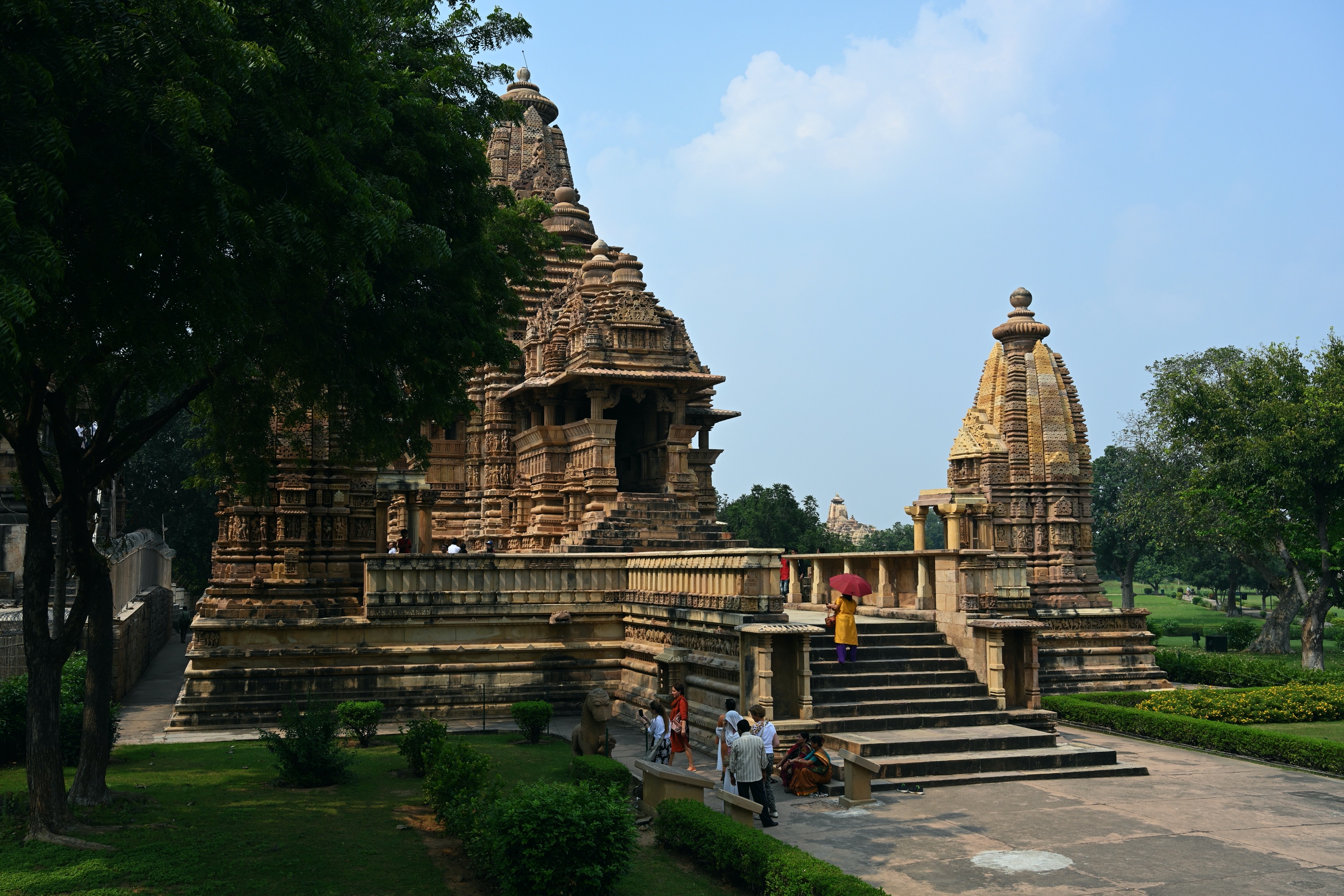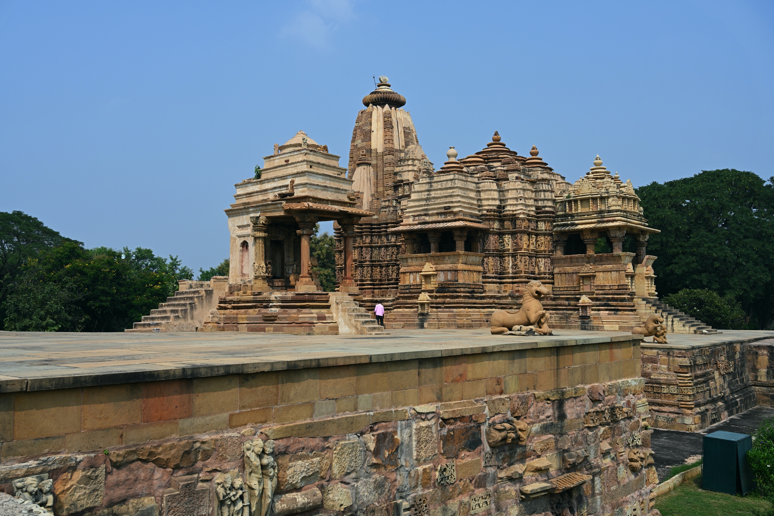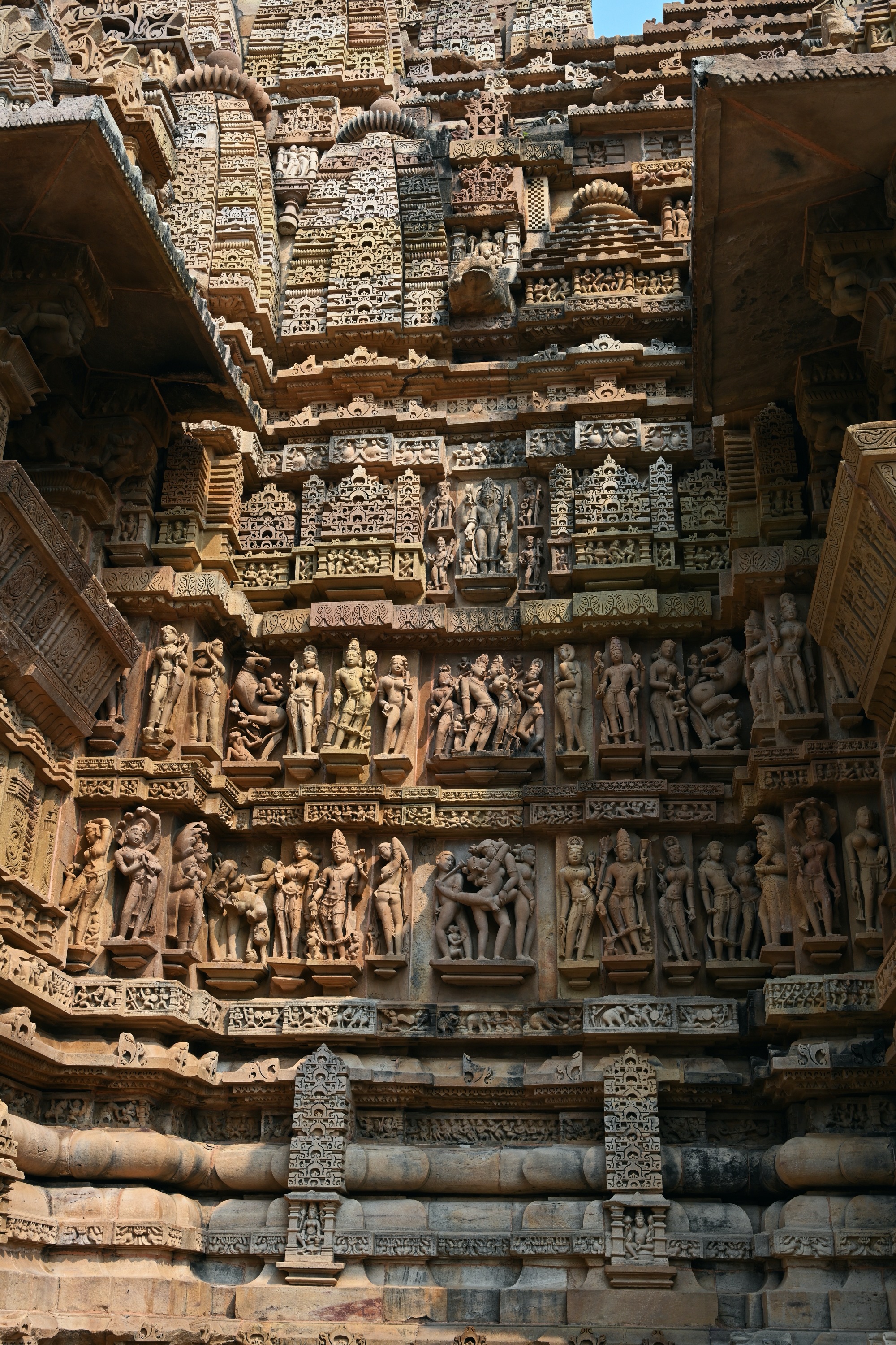 The Kharujaho Temple Group is a group of Hindu temples and Jain Temples in Kharujaho, Chhatarpur district, Madhya Pradesh, India. The temples are famous for their nagara-style symbolism and their erotic sculptures. Most Kharajaho temples were build between 950AD and 1050AD by the Chandela dynasty. The Kharujaho Temples are made of sandstone with a granite foundation that is almost concealed from view. The temples feature a variety of artwork, of which 10% is sexual or erotic art outside and inside the temples. The complex is broadly divided in three parts: the Eastern group, the Southern group and the Western group.