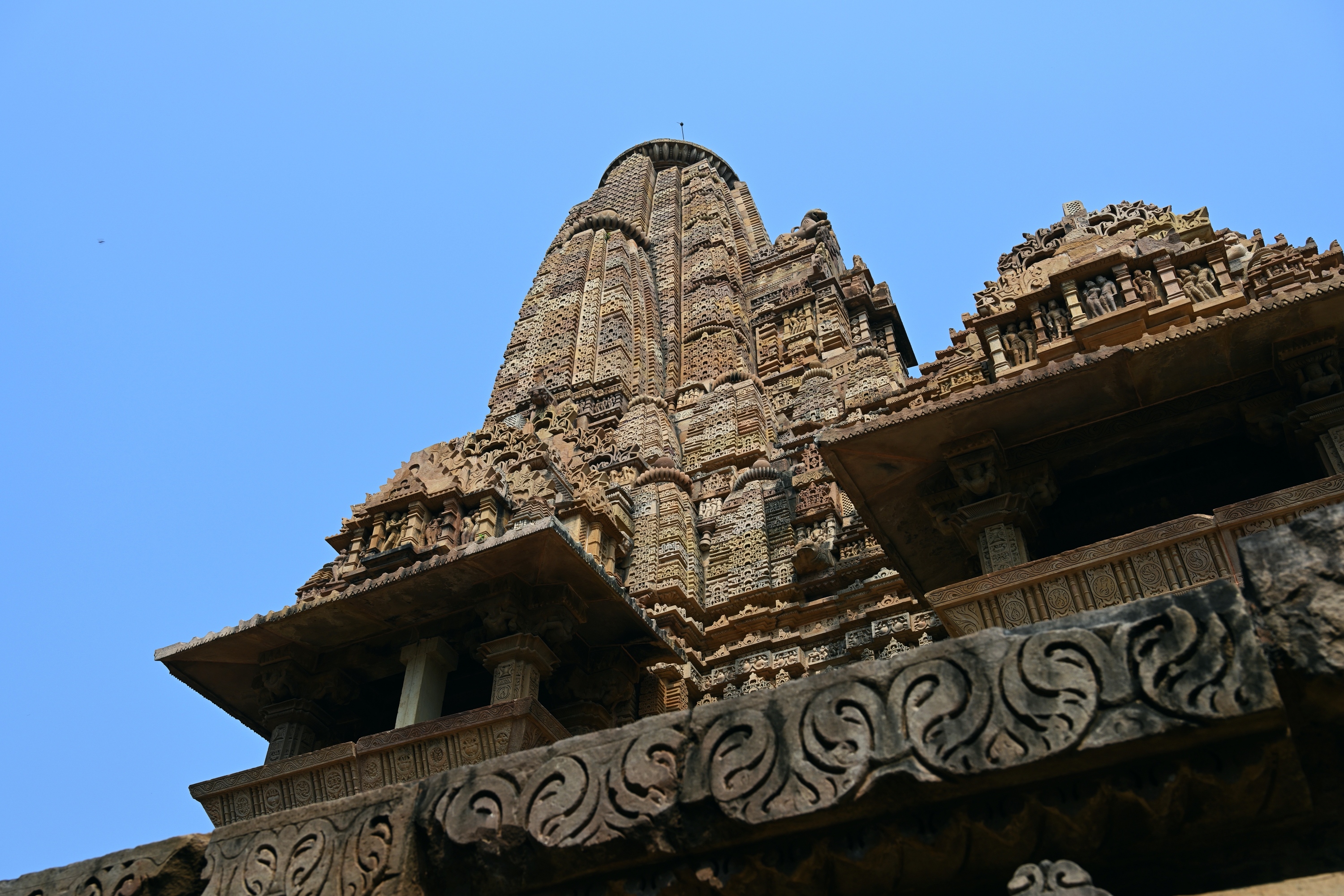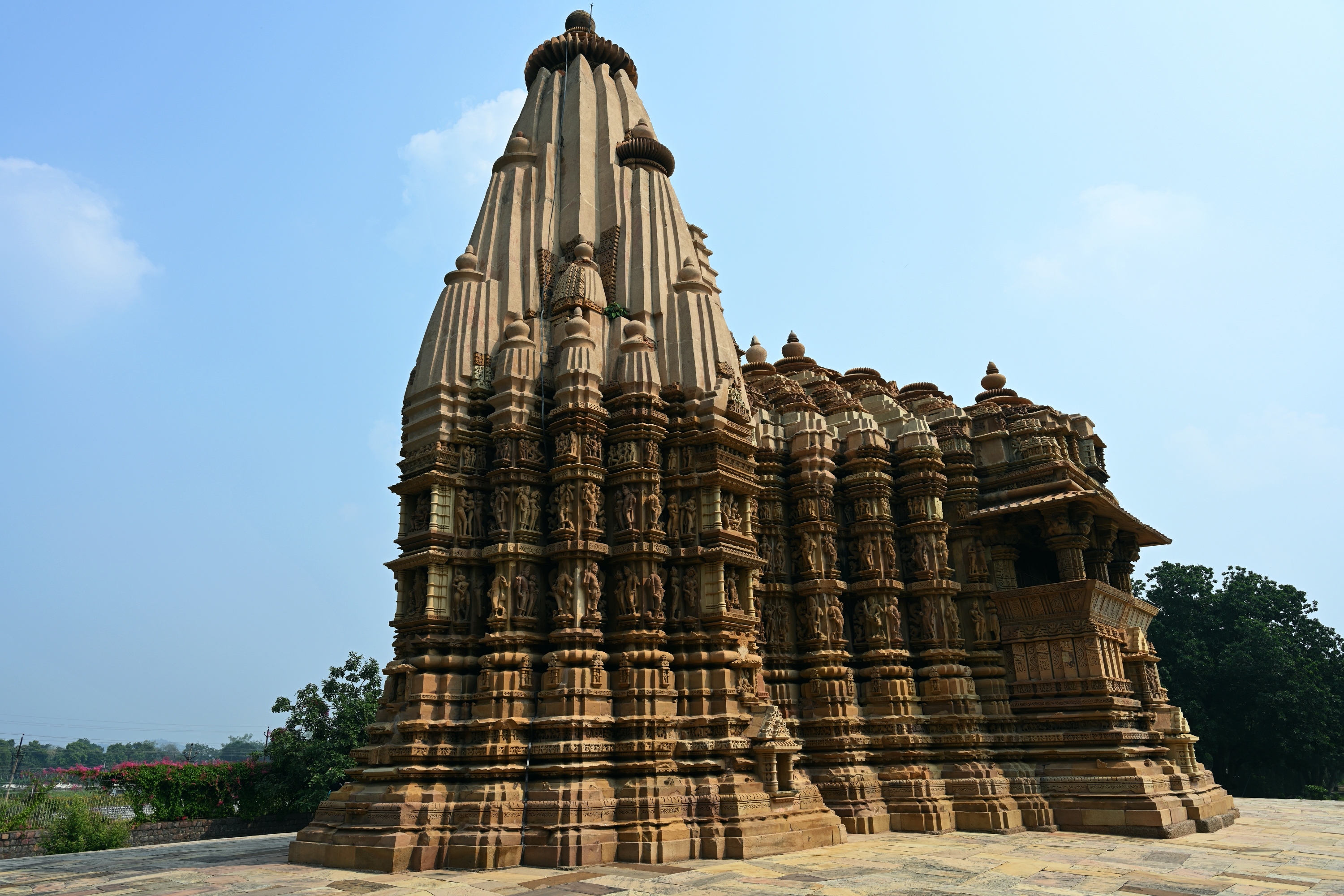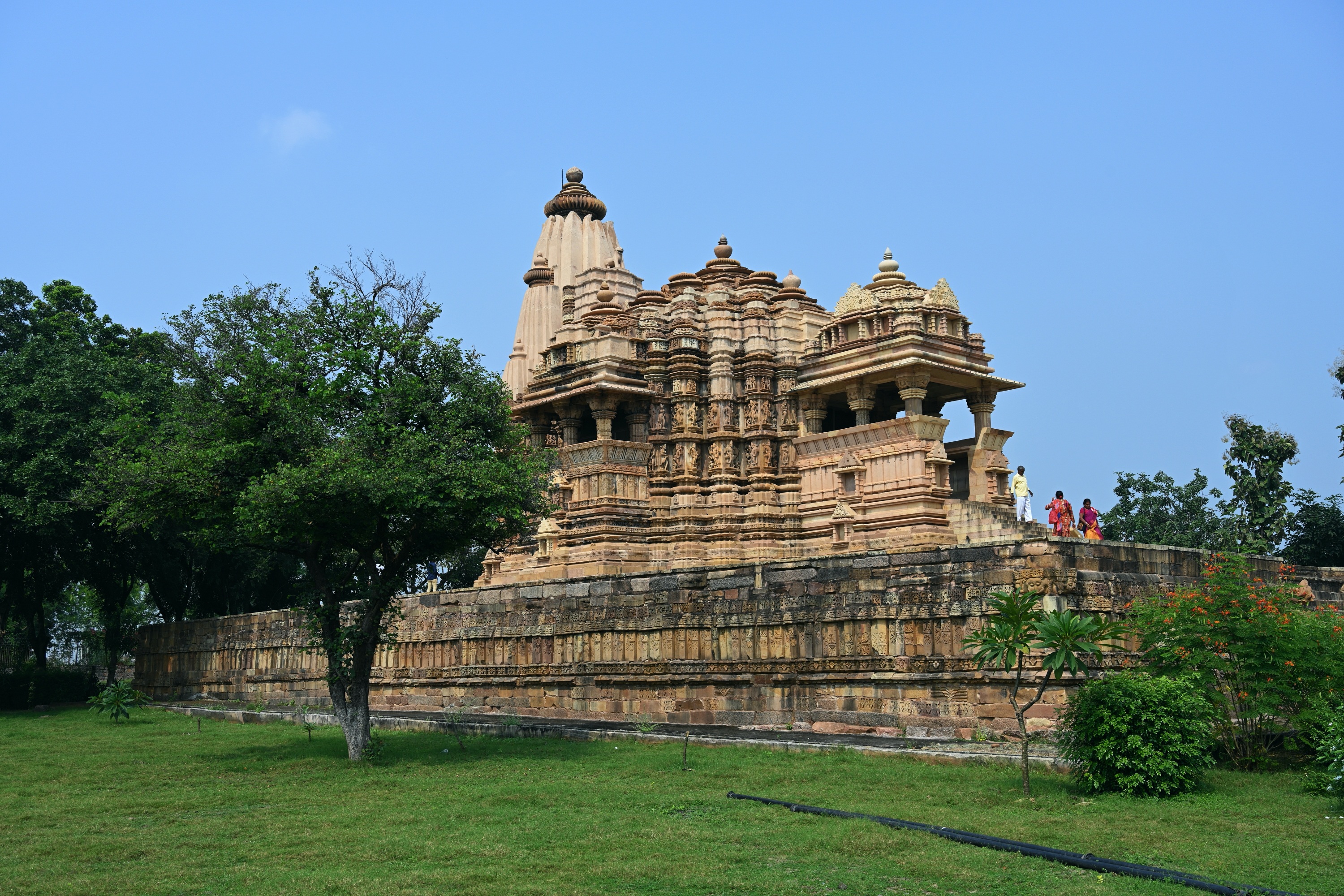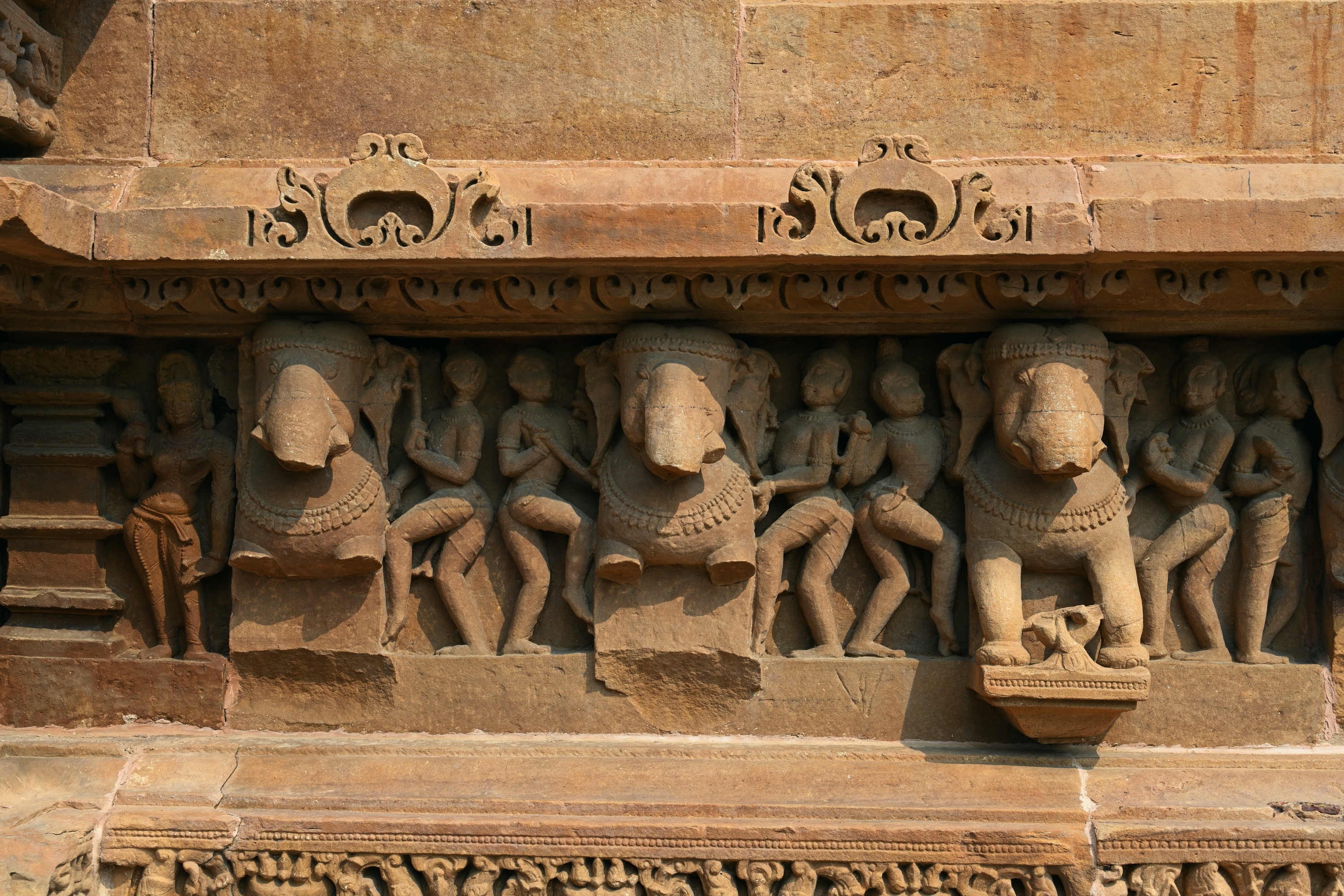 The Kharujaho Temple Group is a group of Hindu temples and Jain Temples in Kharujaho, Chhatarpur district, Madhya Pradesh, India. The temples are famous for their nagara-style symbolism and their erotic sculptures. Most Kharajaho temples were build between 950AD and 1050AD by the Chandela dynasty. The Kharujaho Temples are made of sandstone with a granite foundation that is almost concealed from view. The temples feature a variety of artwork, of which 10% is sexual or erotic art outside and inside the temples. The complex is broadly divided in three parts: the Eastern group, the Southern group and the Western group.