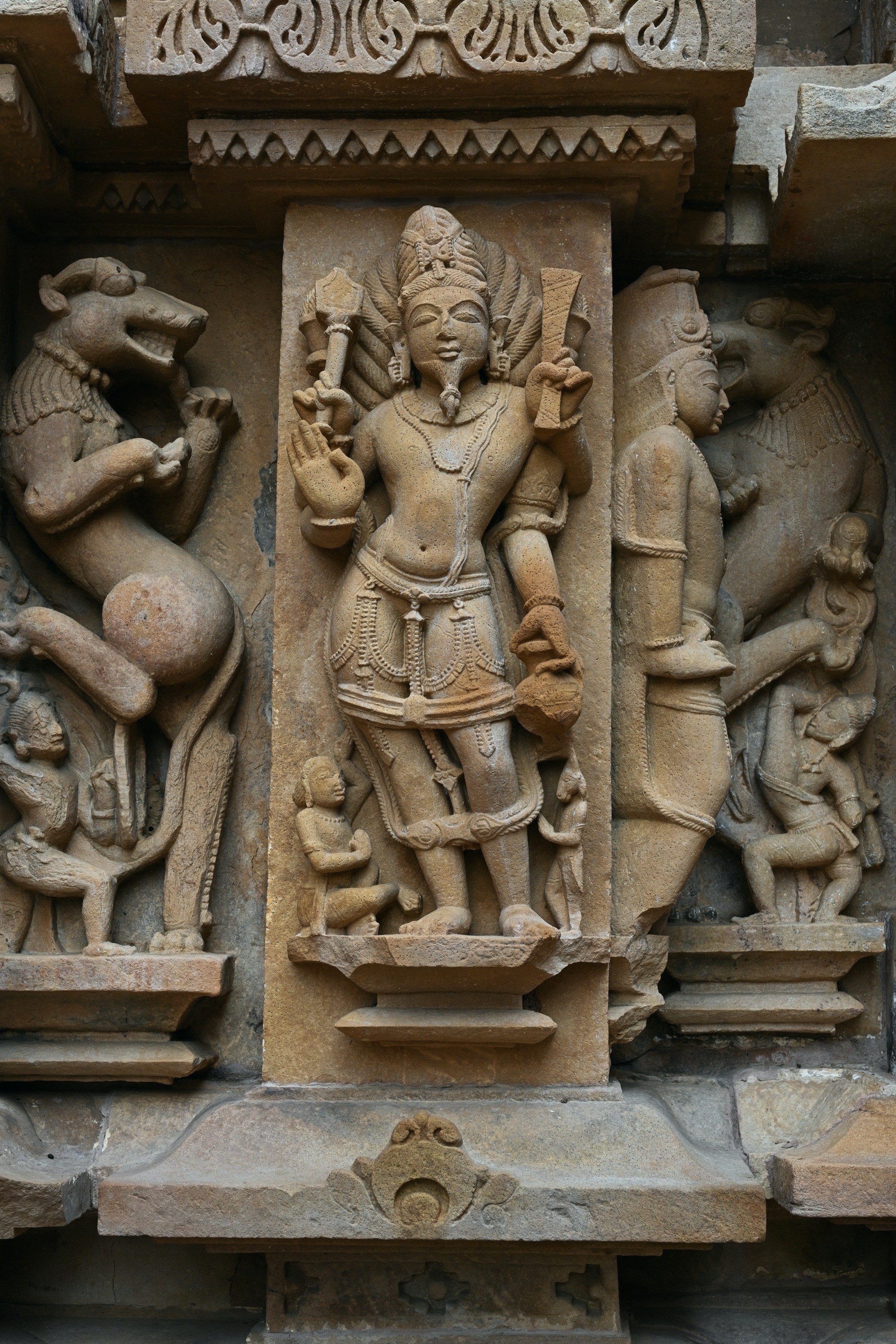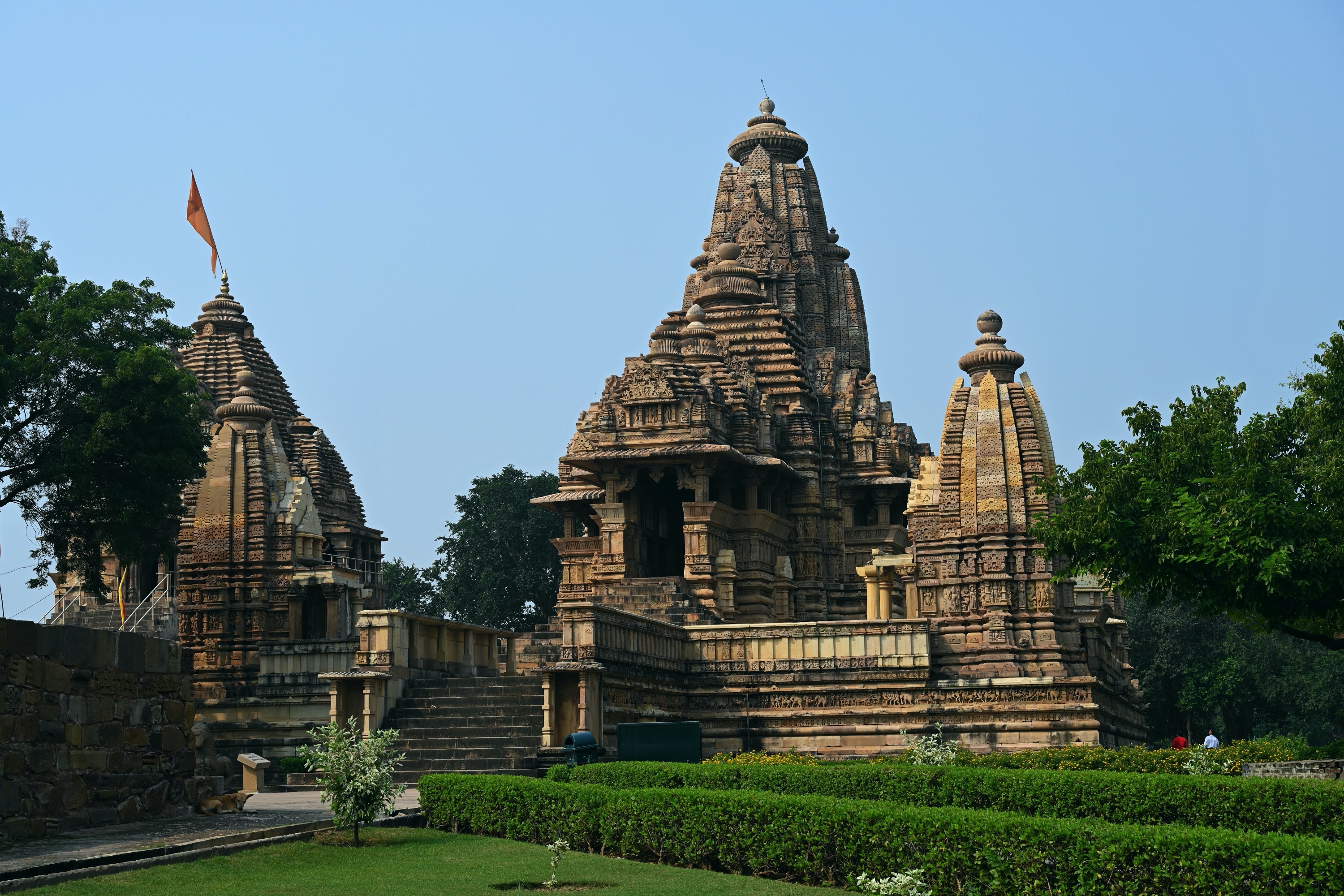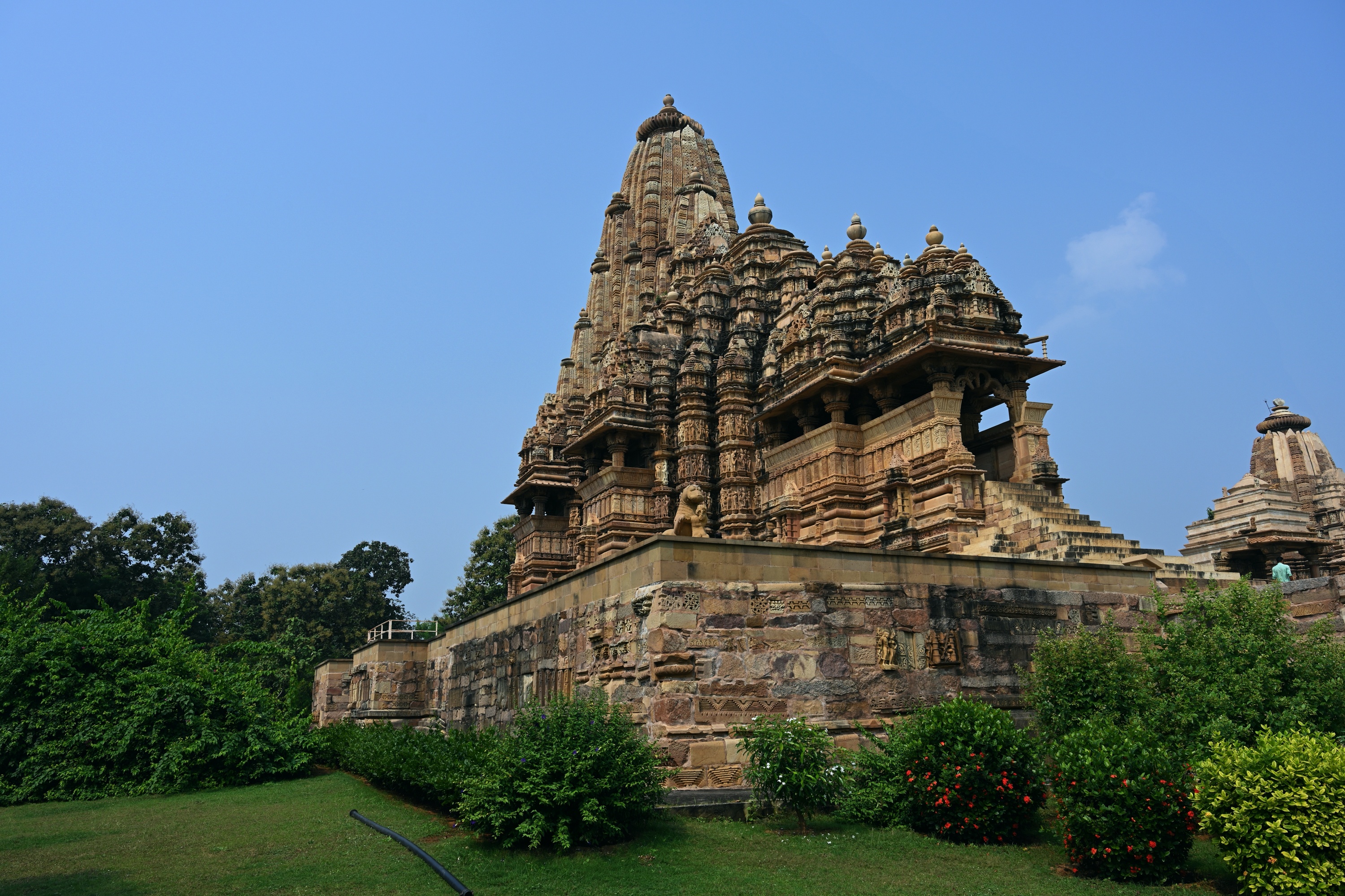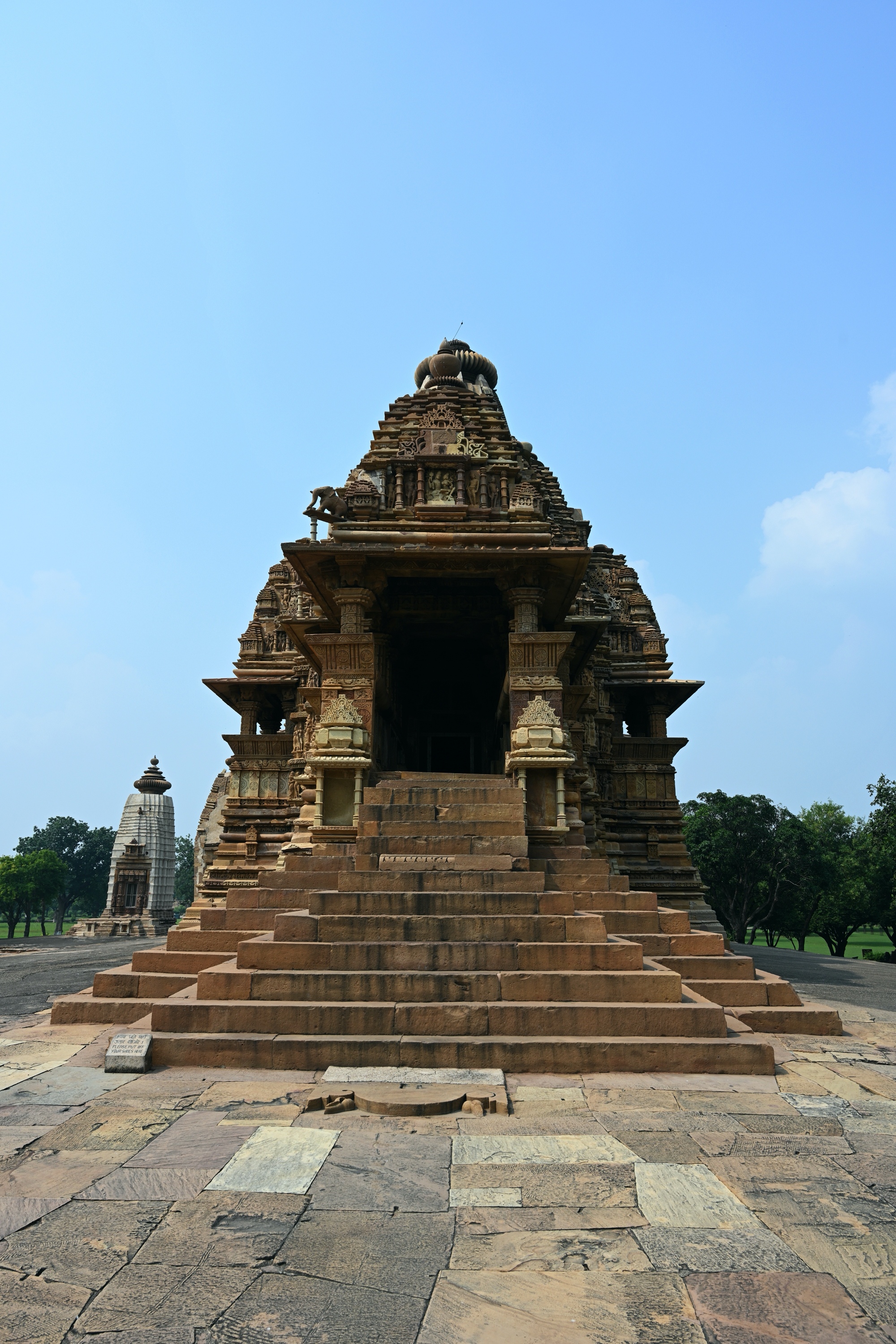 The Kharujaho Temple Group is a group of Hindu temples and Jain Temples in Kharujaho, Chhatarpur district, Madhya Pradesh, India. The temples are famous for their nagara-style symbolism and their erotic sculptures. Most Kharajaho temples were build between 950AD and 1050AD by the Chandela dynasty. The Kharujaho Temples are made of sandstone with a granite foundation that is almost concealed from view. The temples feature a variety of artwork, of which 10% is sexual or erotic art outside and inside the temples. The complex is broadly divided in three parts: the Eastern group, the Southern group and the Western group.