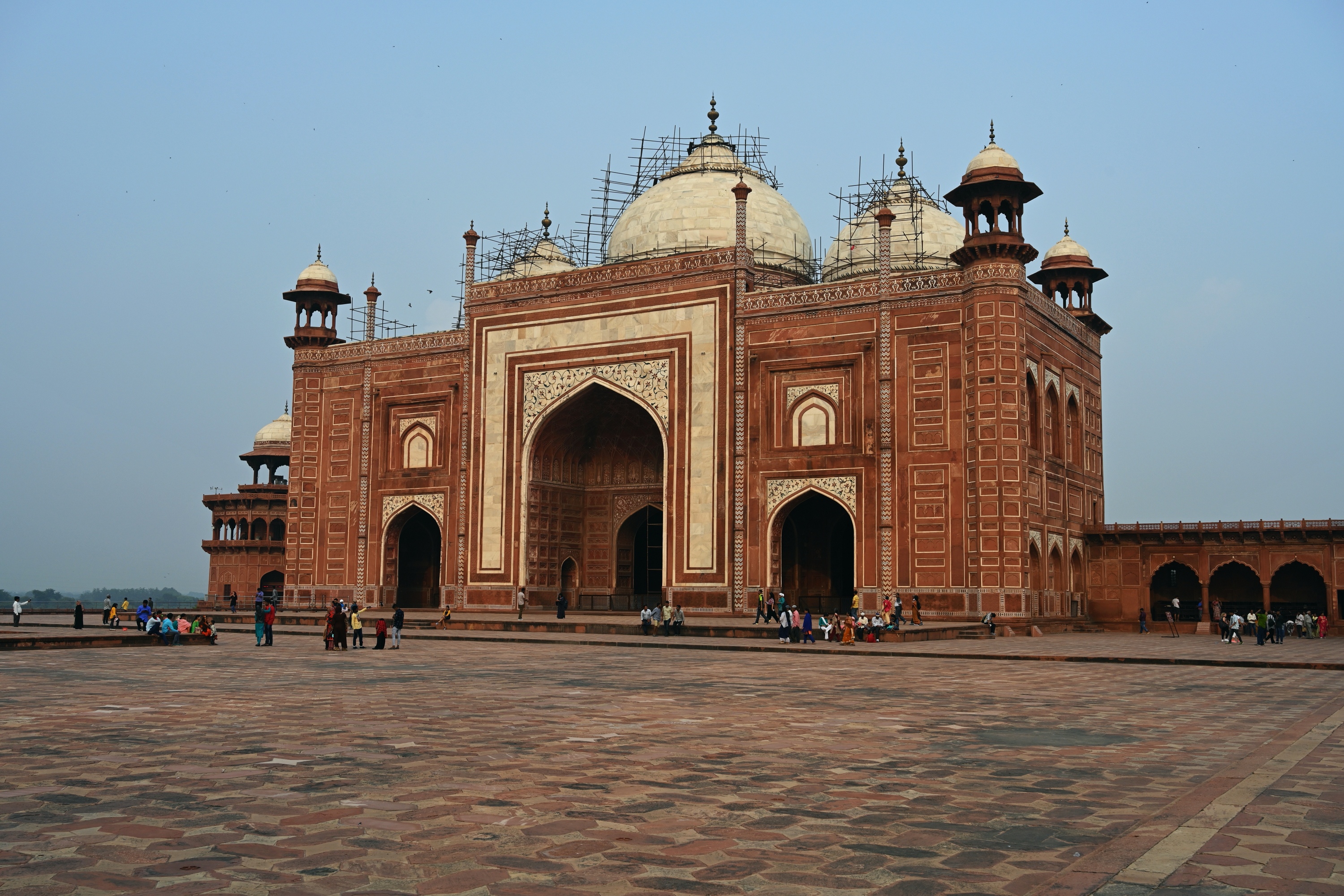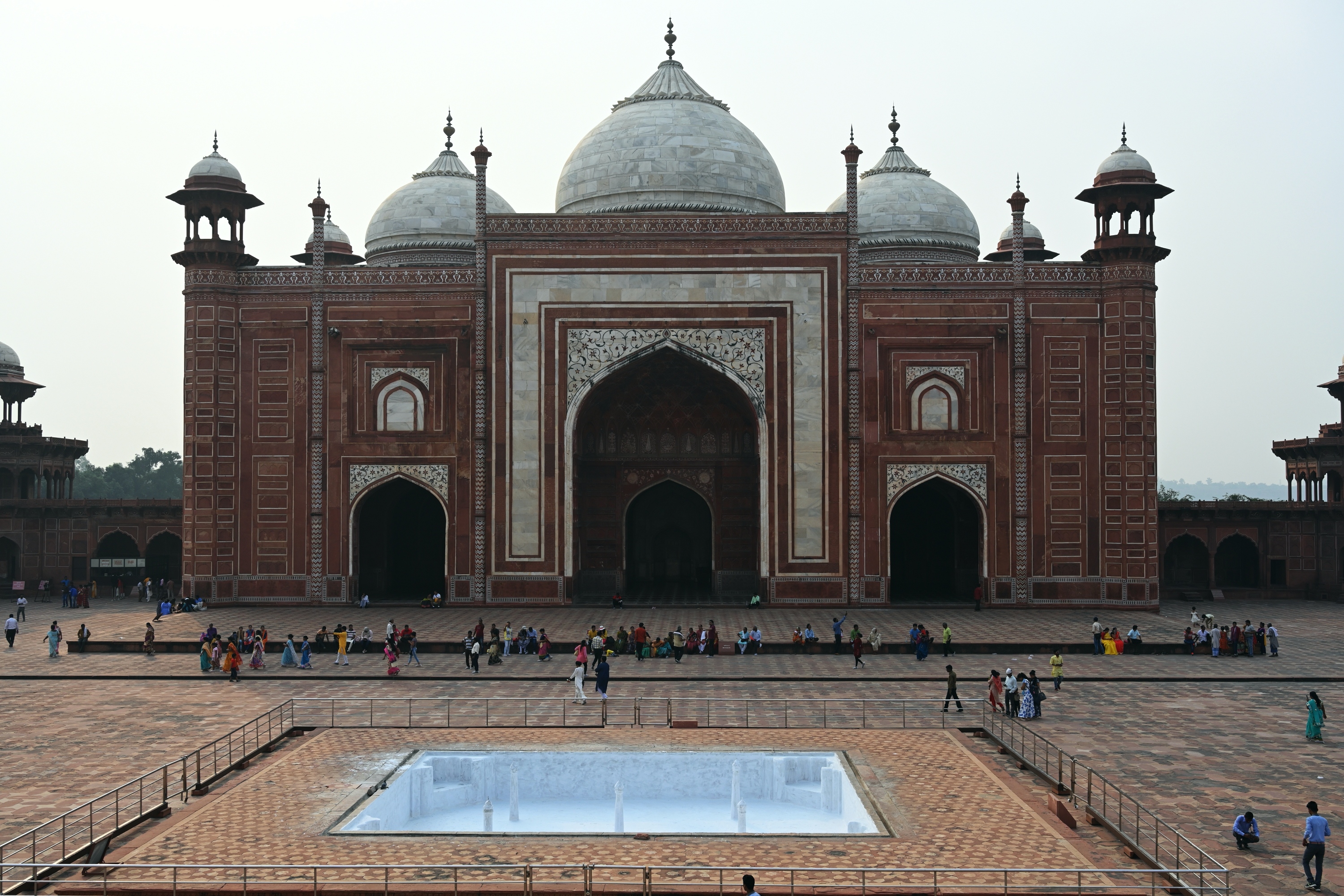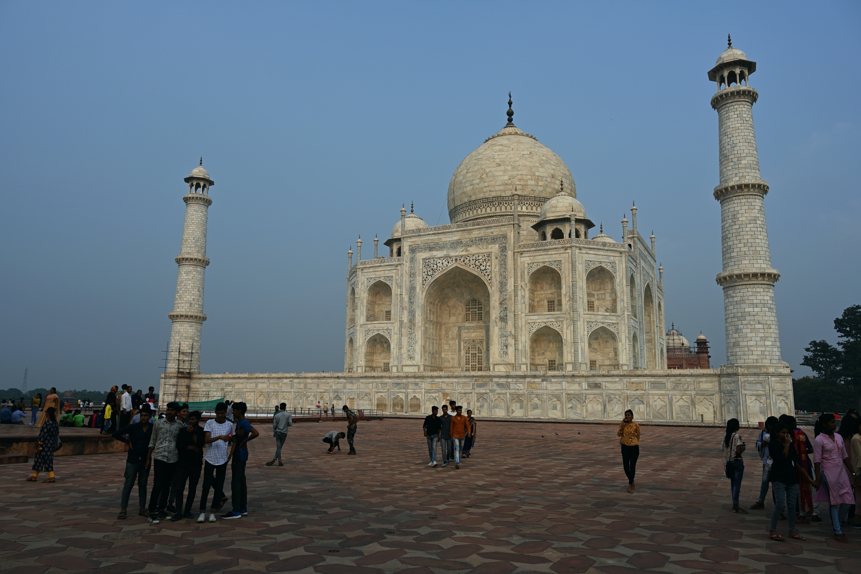 The Taj Mahal (‘Crown of the Palace’) is an ivory-white marble mausoleum on the right bank of the river Yamuna in Agra, Uttar Pradesh, India. It was commissioned in 1631 by the fifth Mughal emperor, Shah Jahan (r. 1628–1658), to house the tomb of his beloved wife, Mumtaz Mahal. Tt also houses the tomb of Shah Jahan himself.