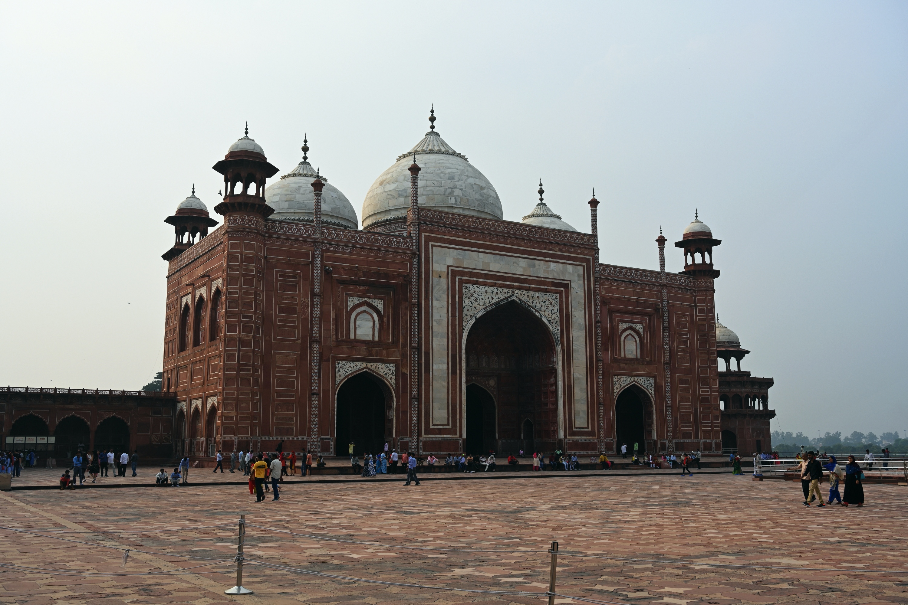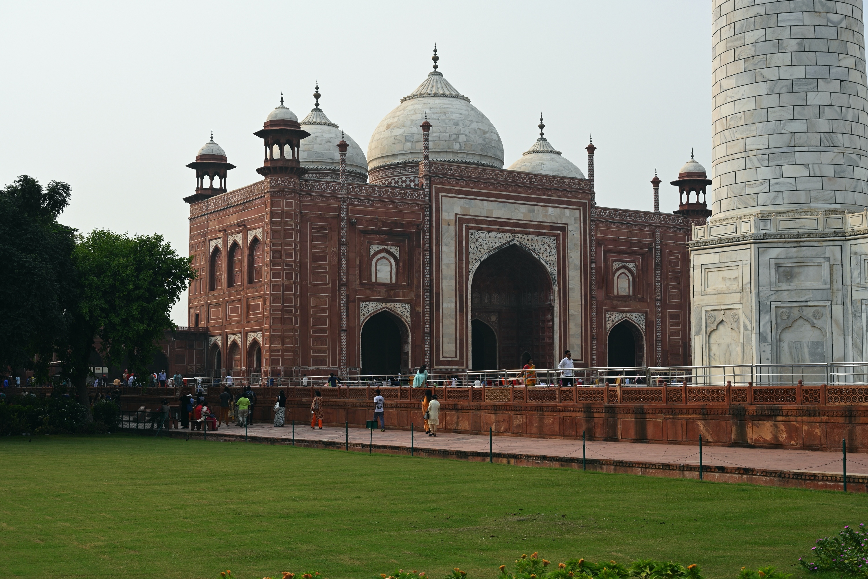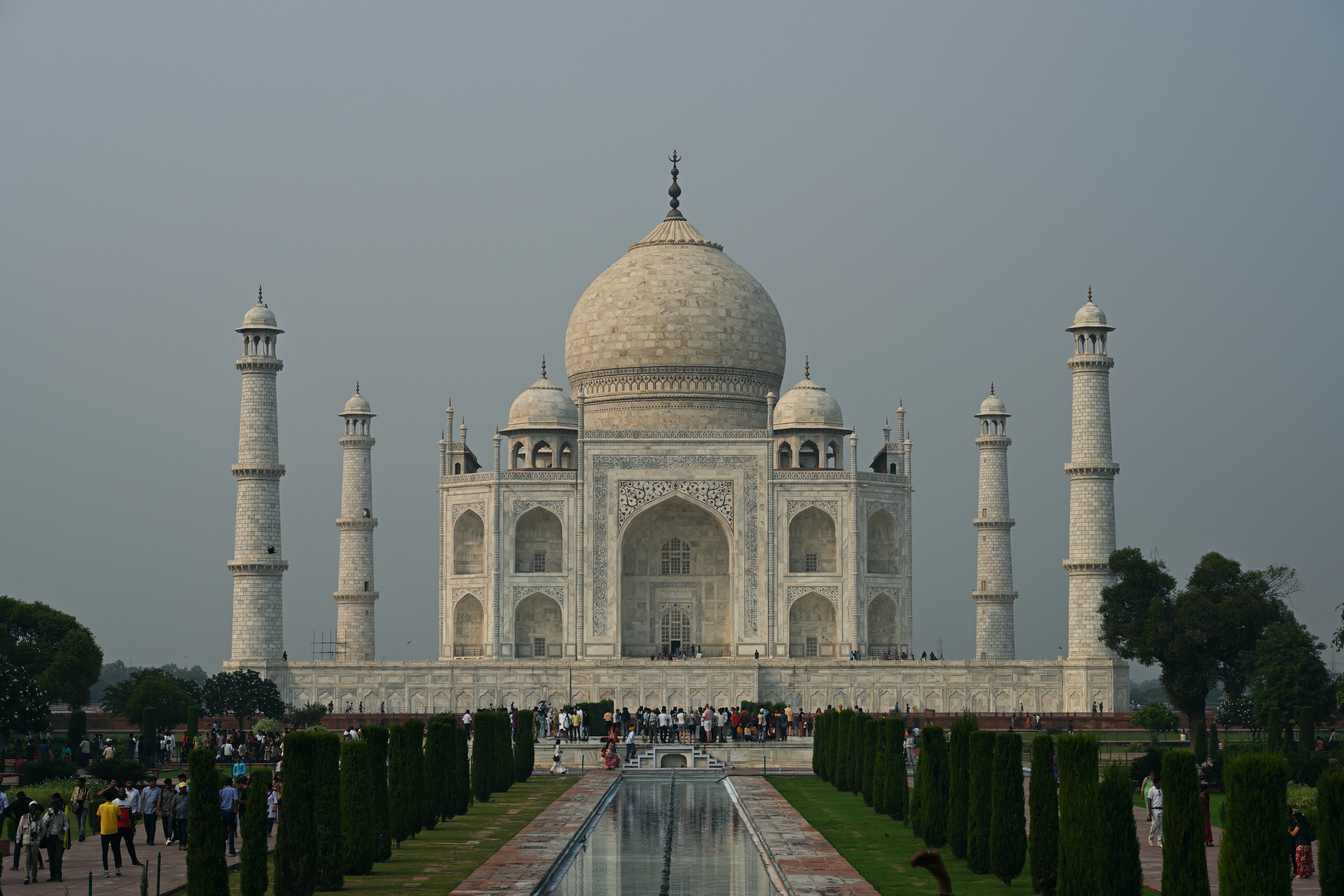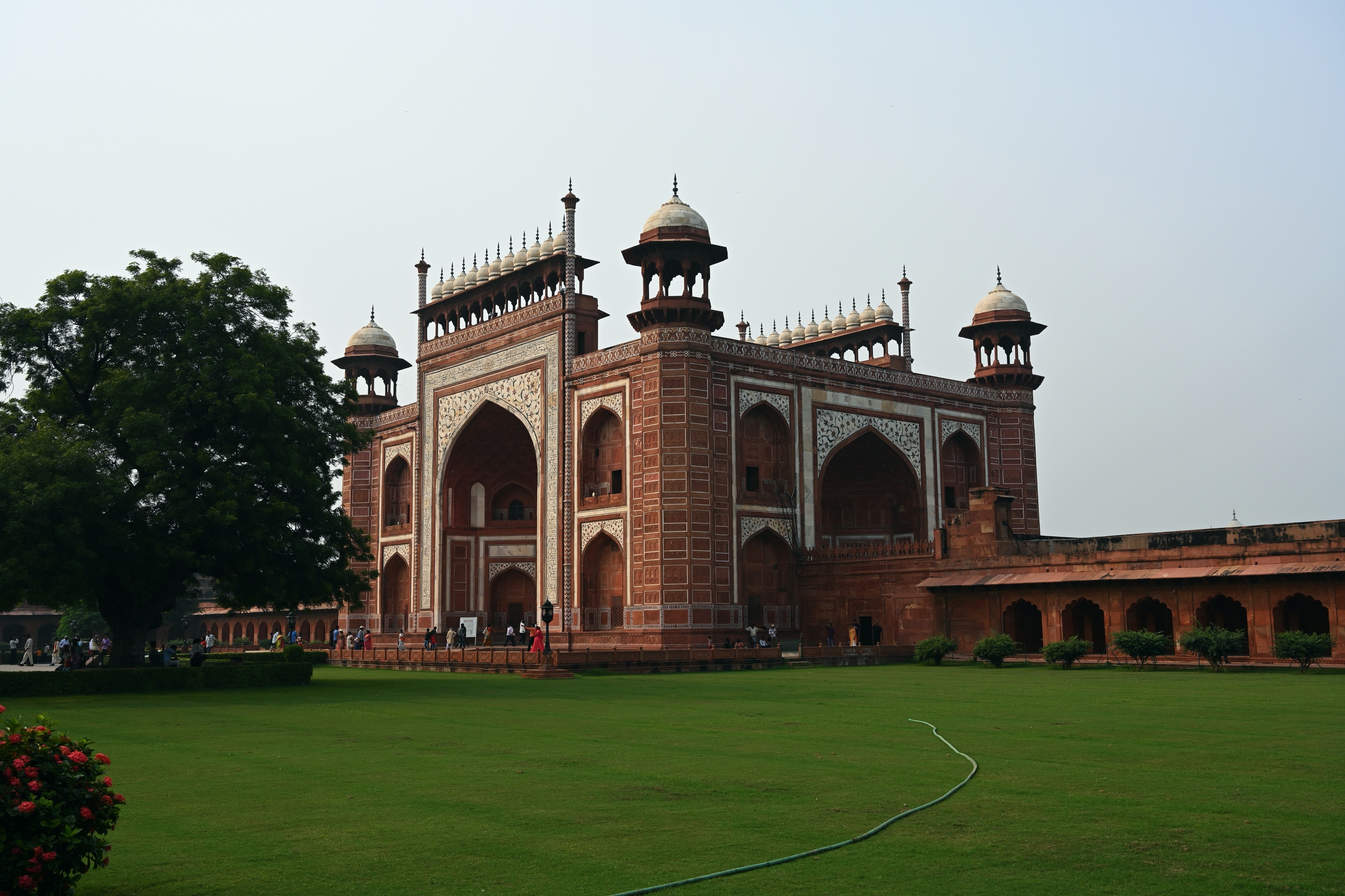 The Taj Mahal (‘Crown of the Palace’) is an ivory-white marble mausoleum on the right bank of the river Yamuna in Agra, Uttar Pradesh, India. It was commissioned in 1631 by the fifth Mughal emperor, Shah Jahan (r. 1628–1658), to house the tomb of his beloved wife, Mumtaz Mahal. Tt also houses the tomb of Shah Jahan himself.