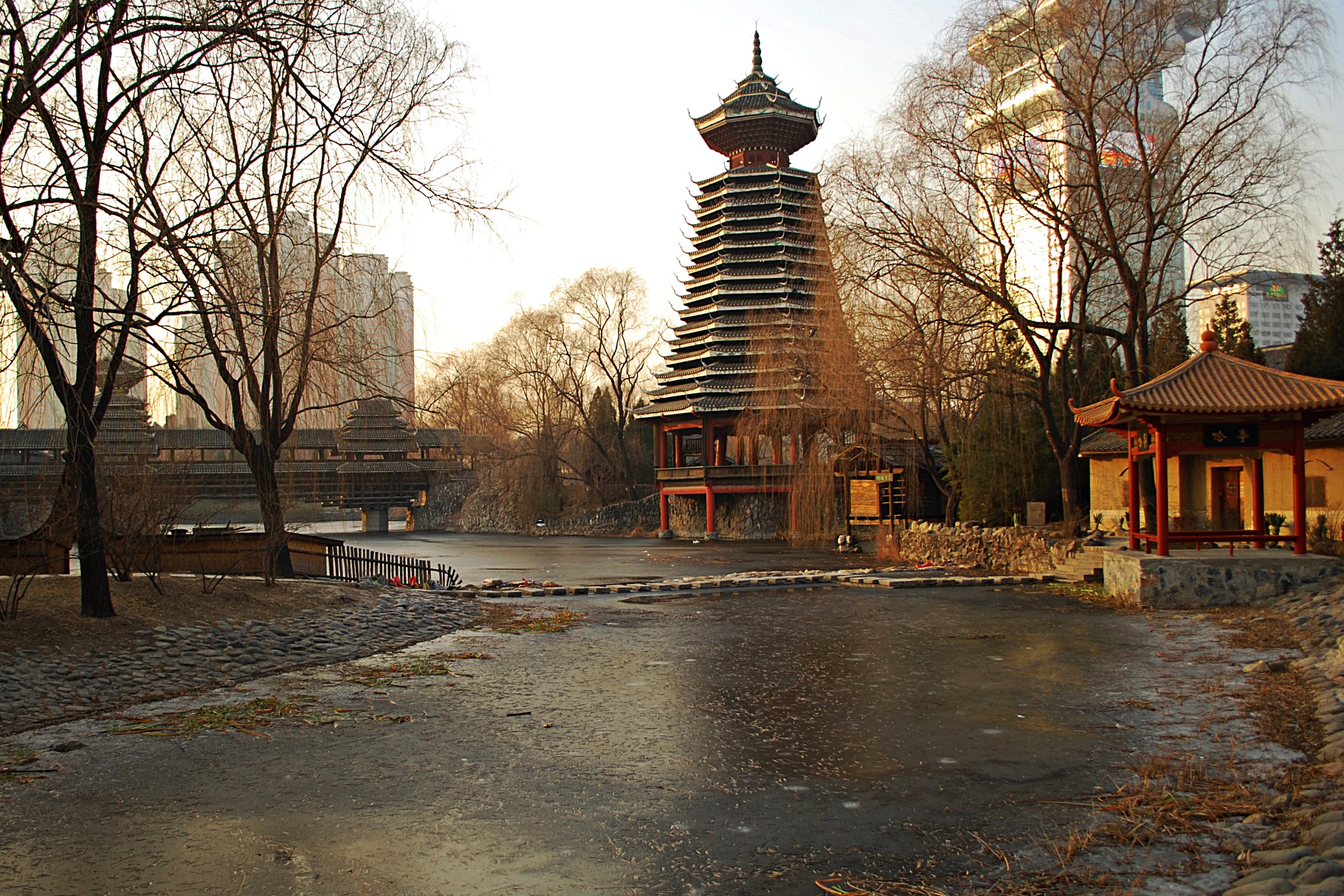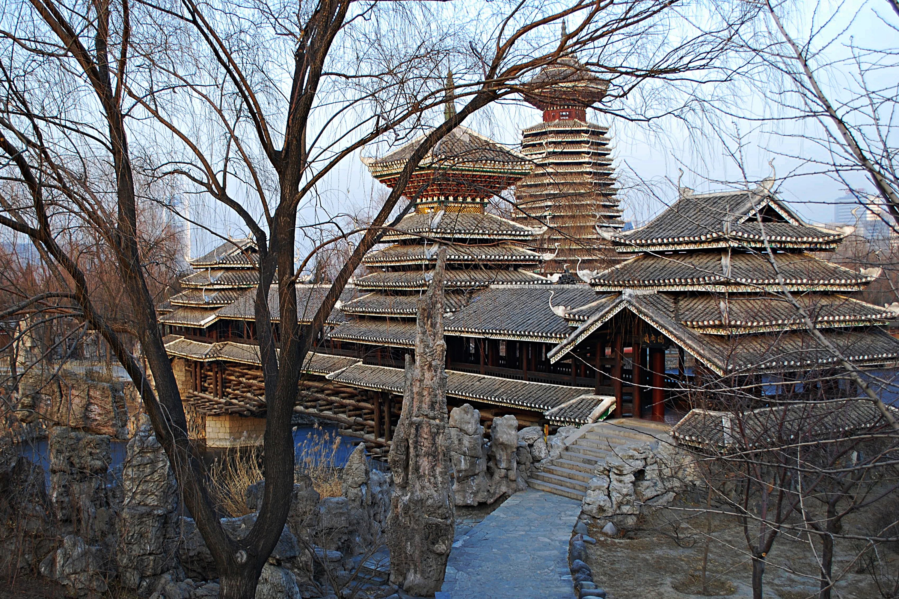 The China Nationalities Museum (中华民族博物馆) is a museum in Beijing, China, located just to the west of the Olympic Green. It features displays of the daily life and architecture of China’s 56 ethnic groups. It is managed by the National Ethnic Affairs Commission of the United Front Work Department. Construction began in October 1992. The North Section was opened to the public on June 18, 1994, and the South Section was opened in September 2001. The museum covers approximately 50 hectares and so far comprises 44 ethnic villages and 200 ethnic buildings.