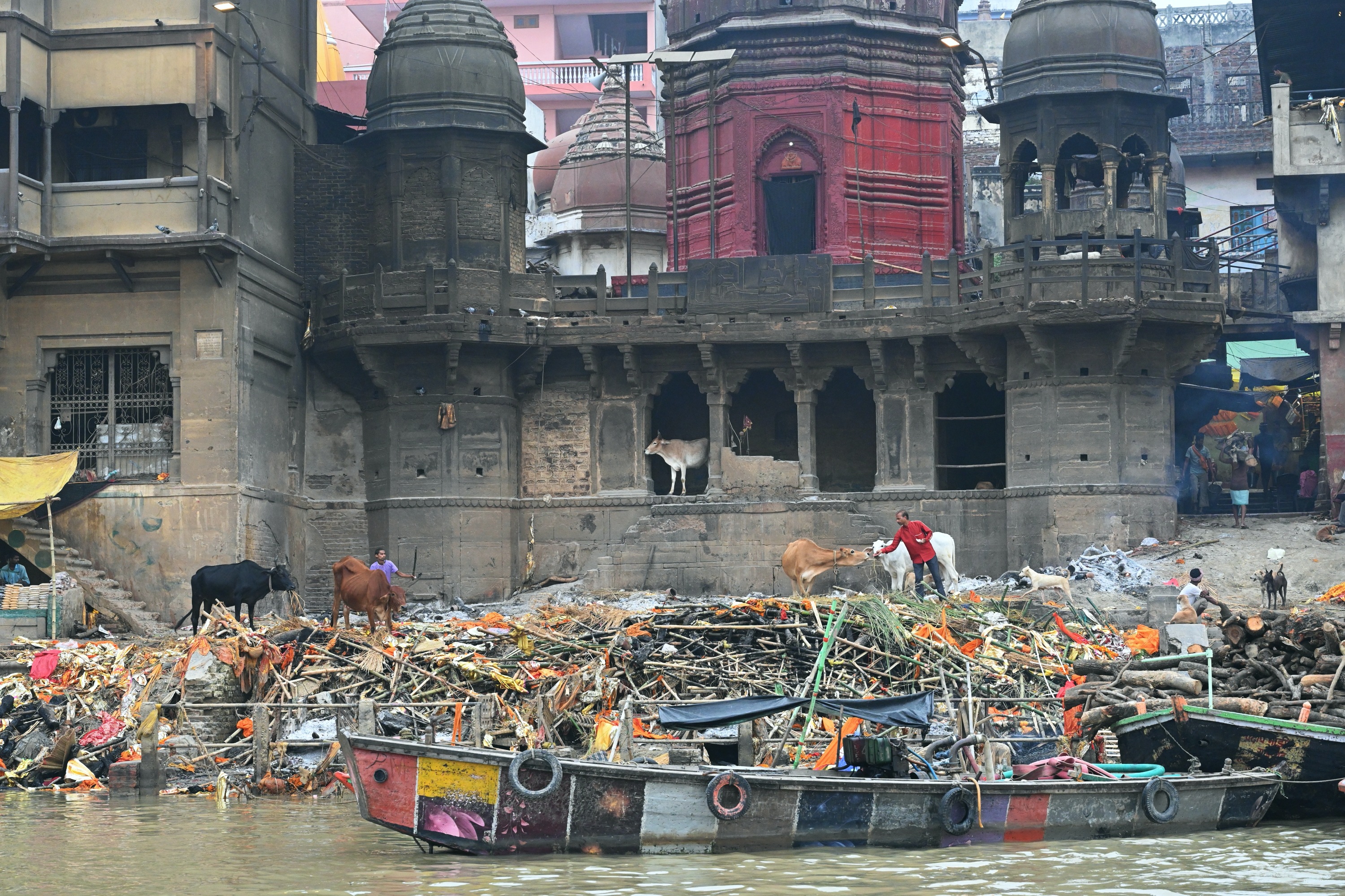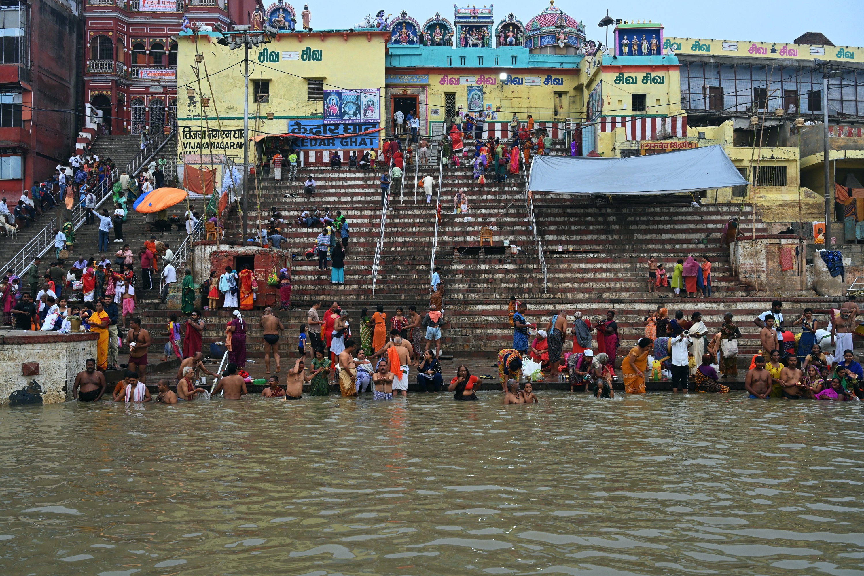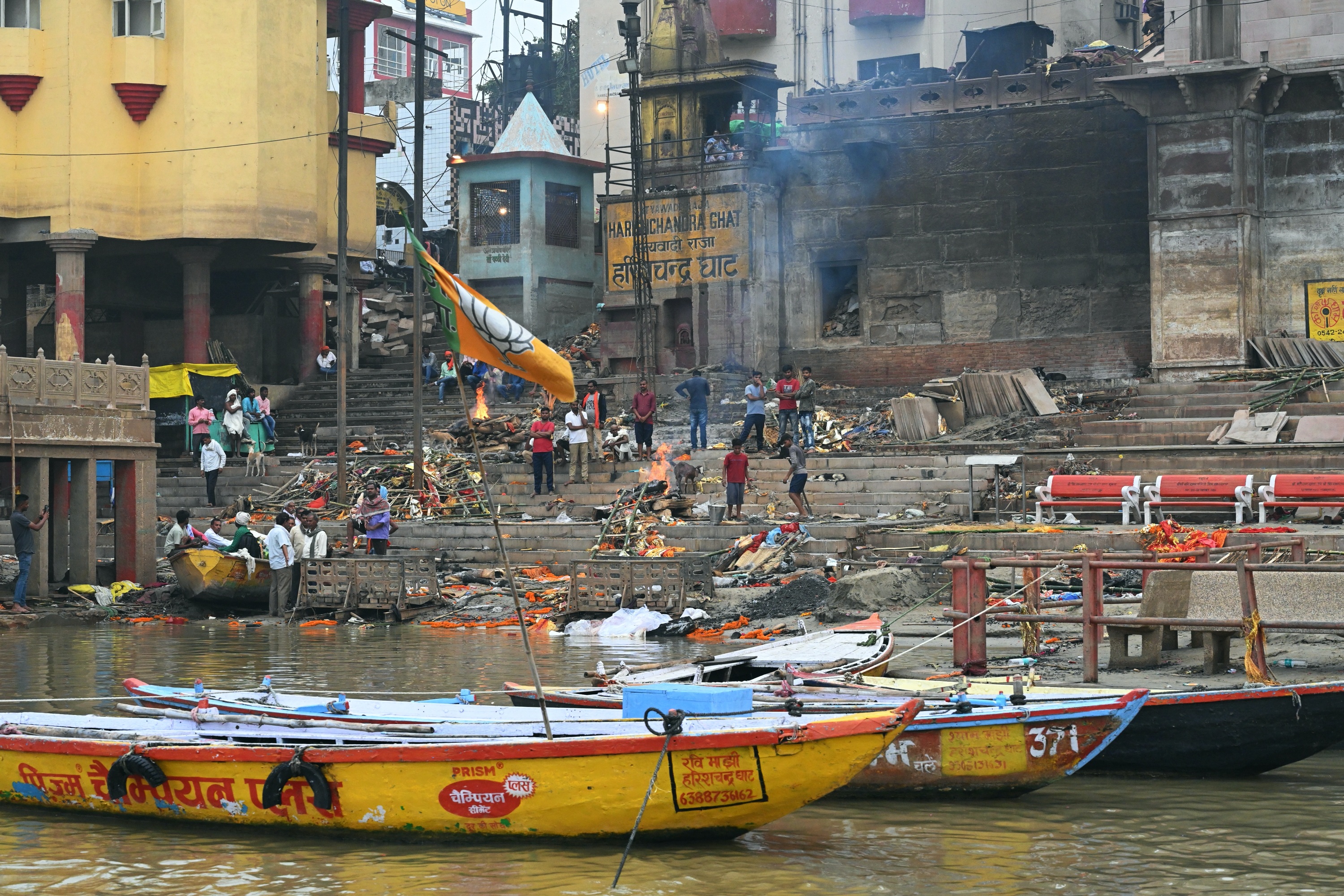 Varanasi is een stad aan de oevers van de Ganges in Uttar Pradesh, India, en is de heiligste van de zeven heilige steden. Varanasi is al duizenden jaren een cultureel centrum in Noord-India en is nauw verbonden met de Ganges. Hindoes geloven dat sterven en gecremeerd worden langs de oevers van de ‘heilige’ Ganges iemand in staat stelt de cyclus van wedergeboorte te doorbreken en verlossing te bereiken, wat de stad tot een belangrijk pelgrimsoord maakt. De stad is wereldwijd bekend om zijn vele ghats, inkepingen van stenen platen langs de rivieroever waar pelgrims rituele wassingen uitvoeren.